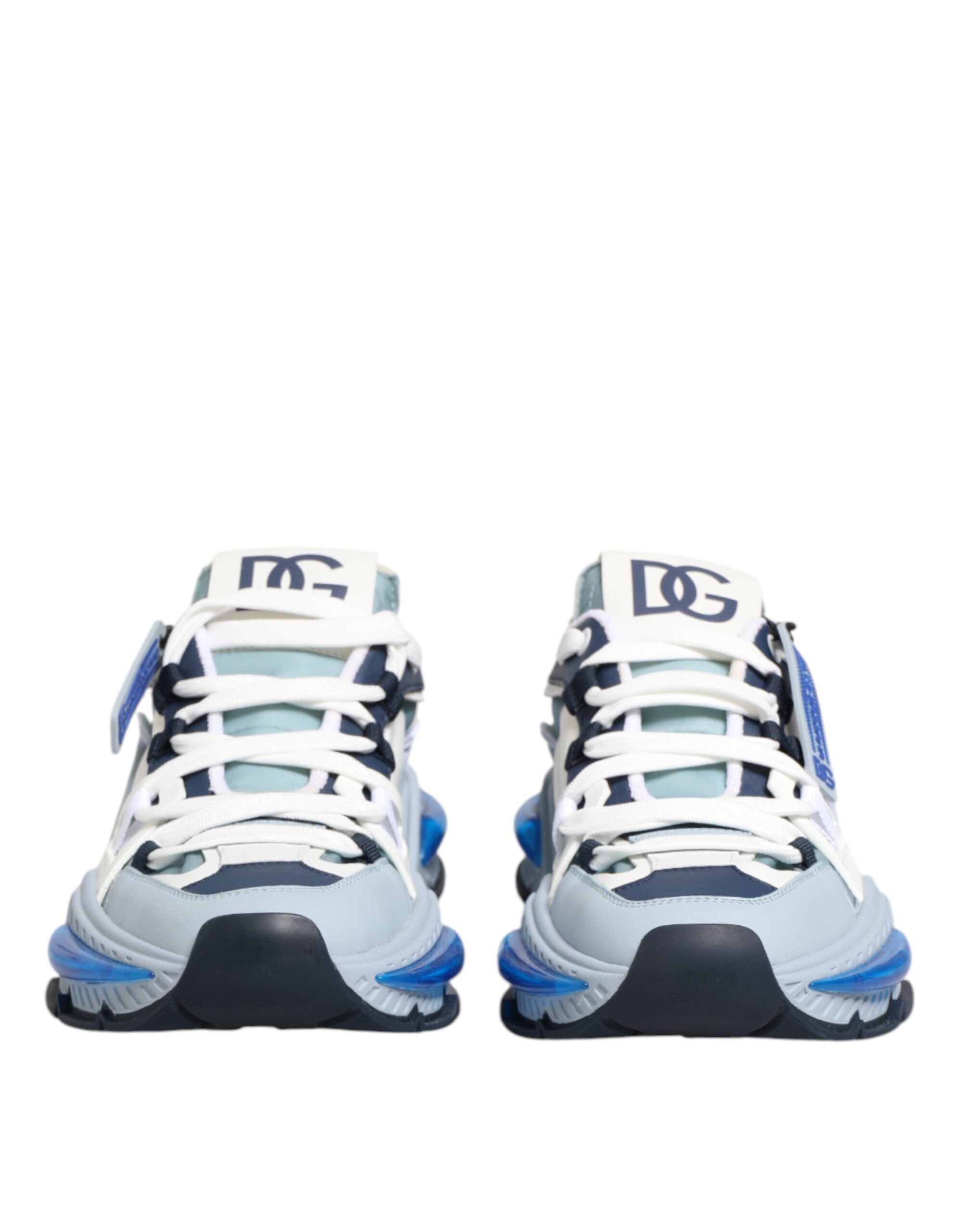 sneakers are crafted from white materials with bold blue accents. Part of the Airmaster line, they feature a chunky silhouette that blends lightweight comfort with Dolce & Gabbana’s contemporary style.