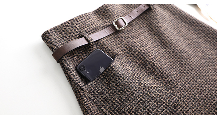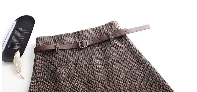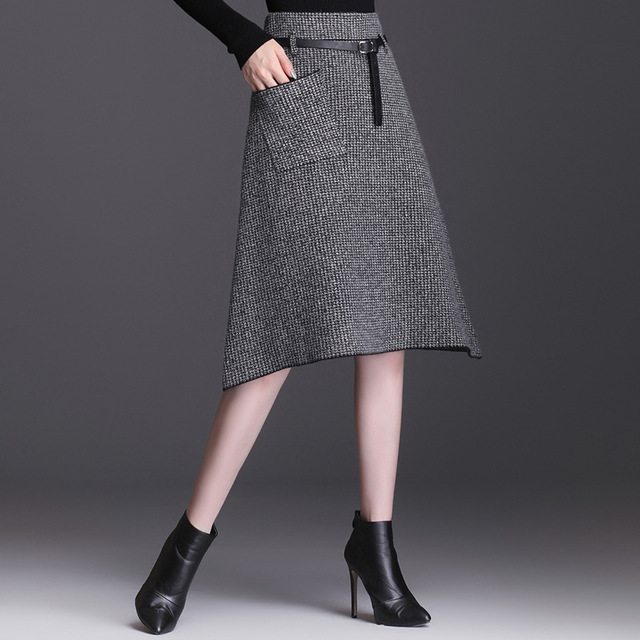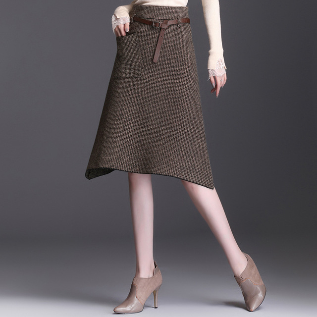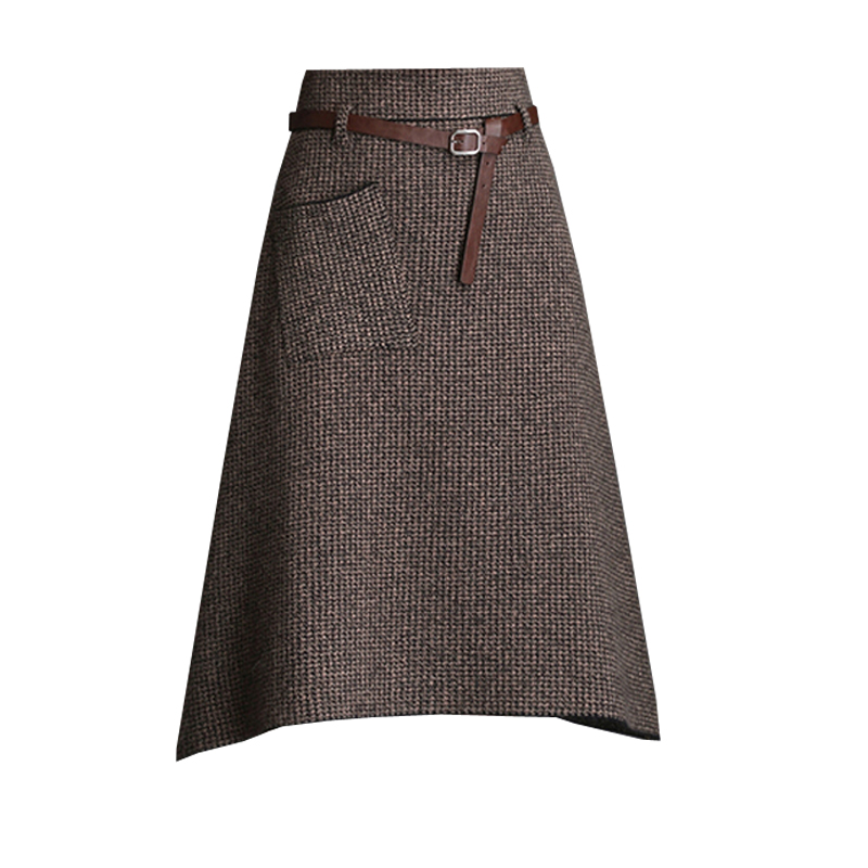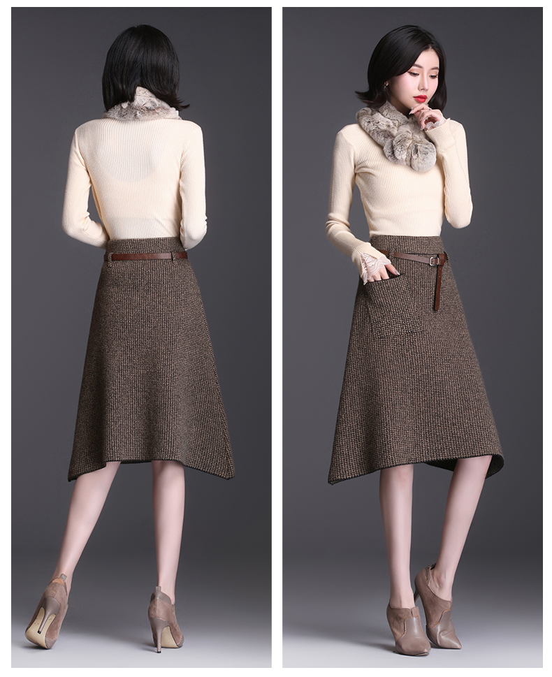 Applicable age: 18-24 years oldsize: one sizeFabric: woolen clothpattern: plainStyle: all-matchWaist type: high waistSkirt type: A-line skirtSkirt length: mid-length skirtCraft: belt, pleated pocket, asymmetrical zipperProfile: Type A