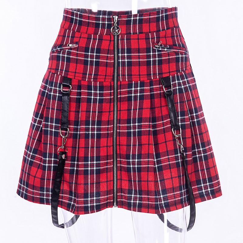 Net red explosion high waist red lattice half skirt , autumn winter fastener zipper, skinny A short skirt