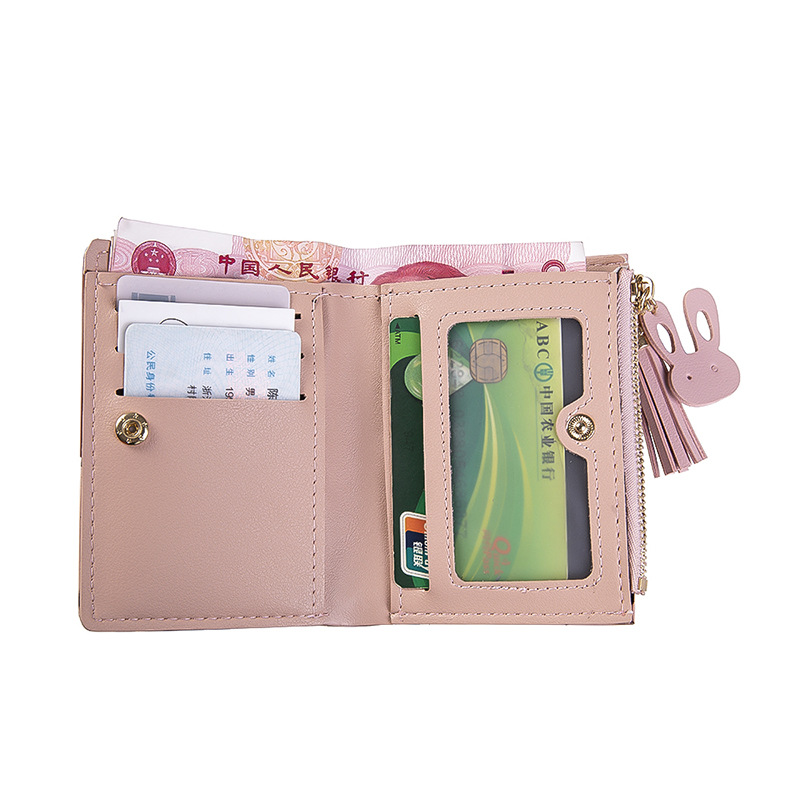 Material: PUSize: length 12cm width 9cm thickness 1.8cmStructure: Banknote position 1 Card position 3 Photo position 1 Zipper position 1 Dark grid 2Opening method: snap button