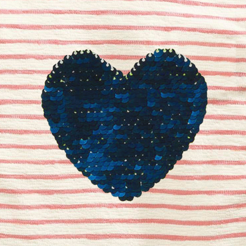 Features: stitching, contrast color, sequin embroidery