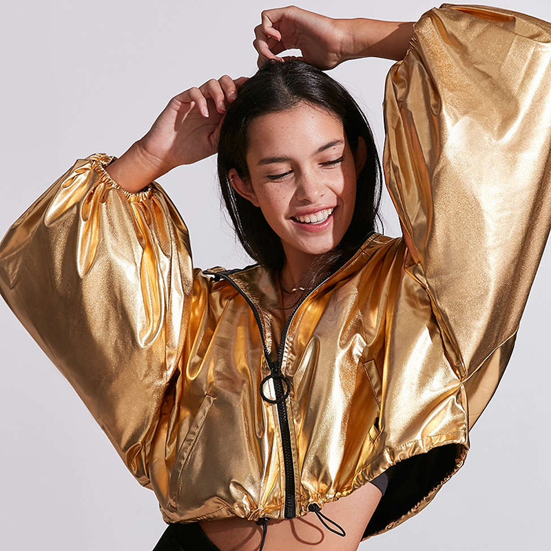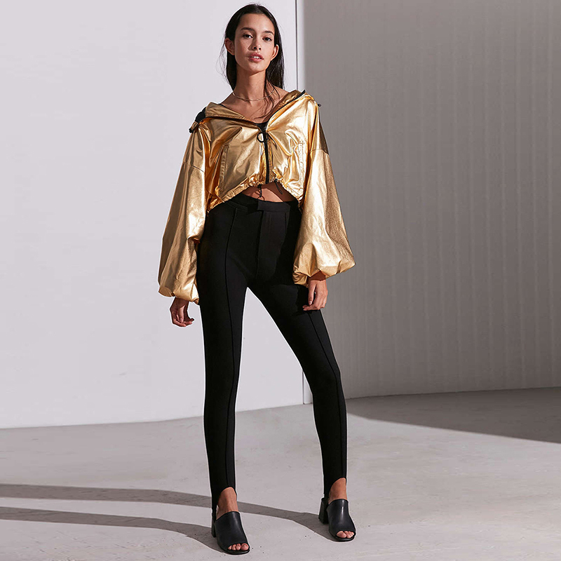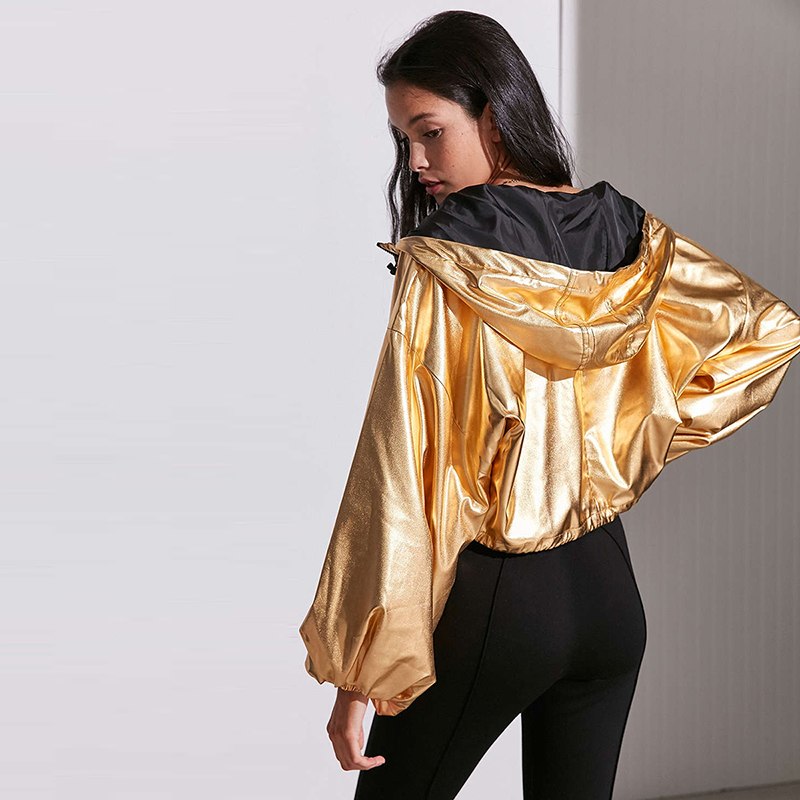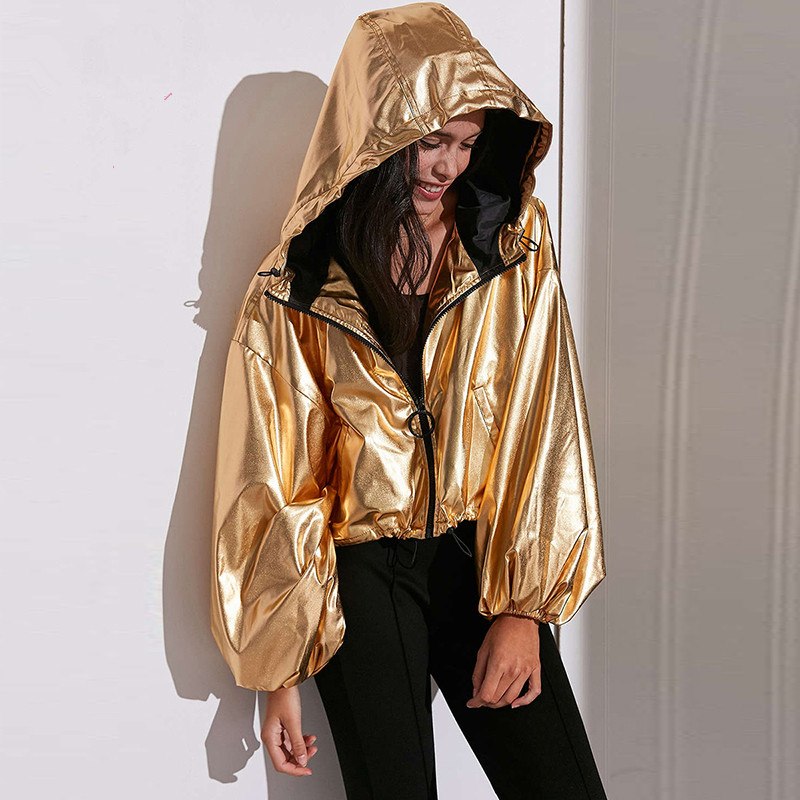 European and American fashion simple metallic lantern sleeves hooded jacket