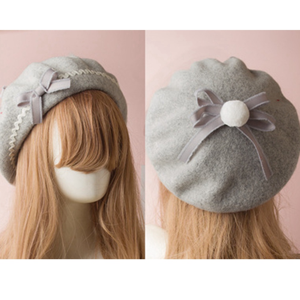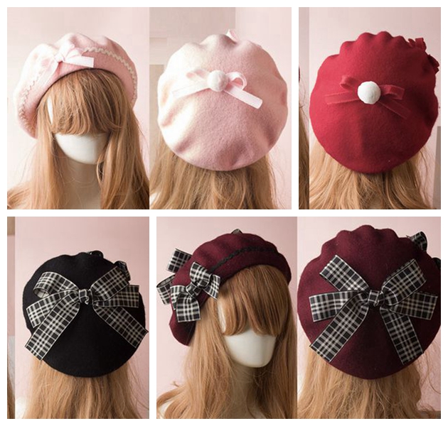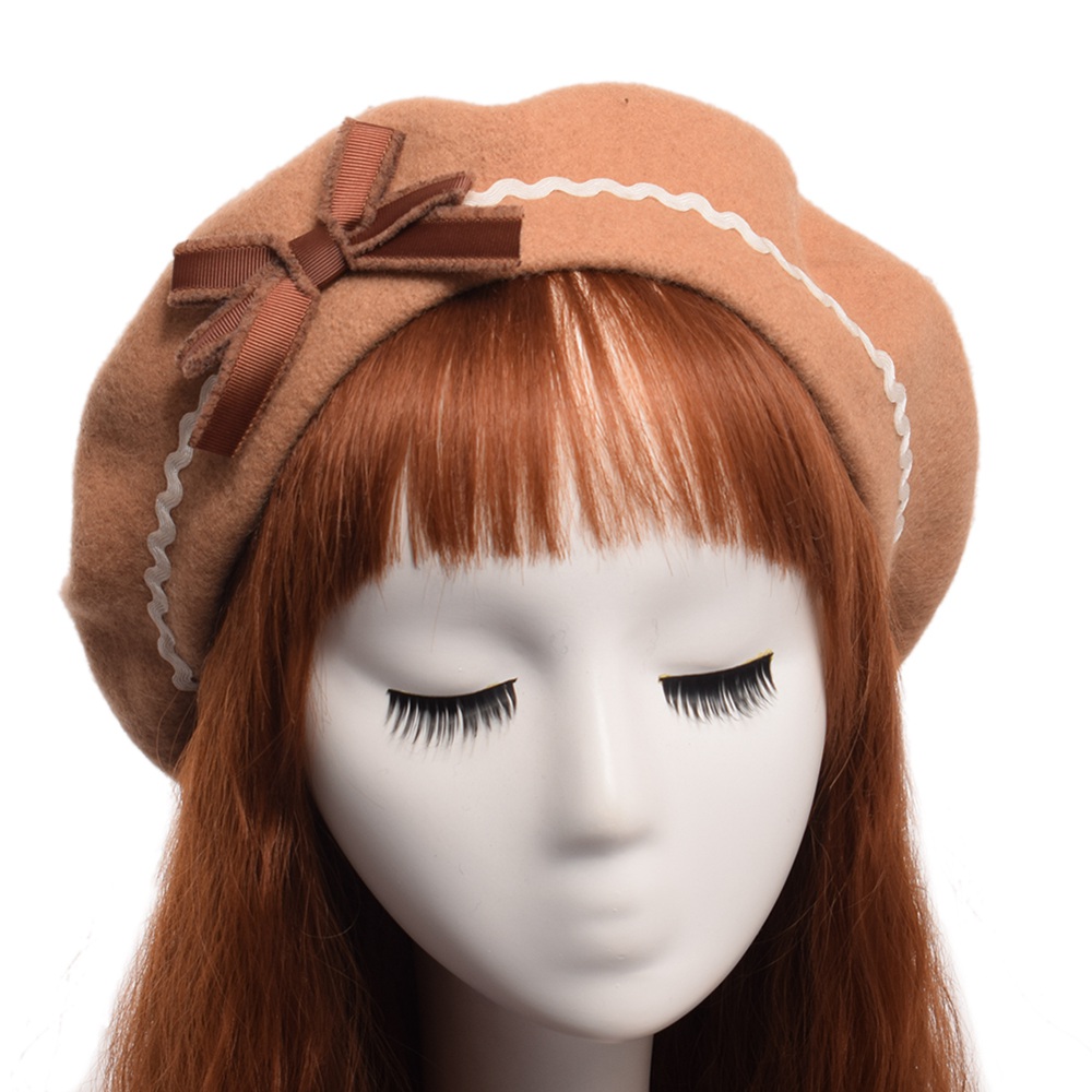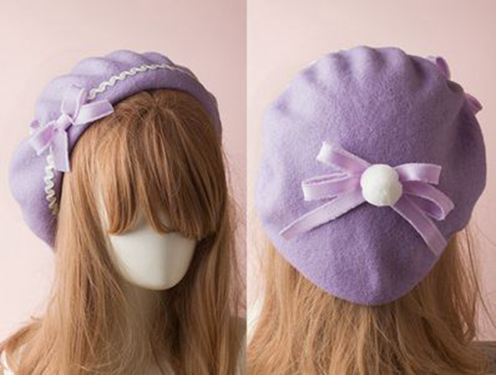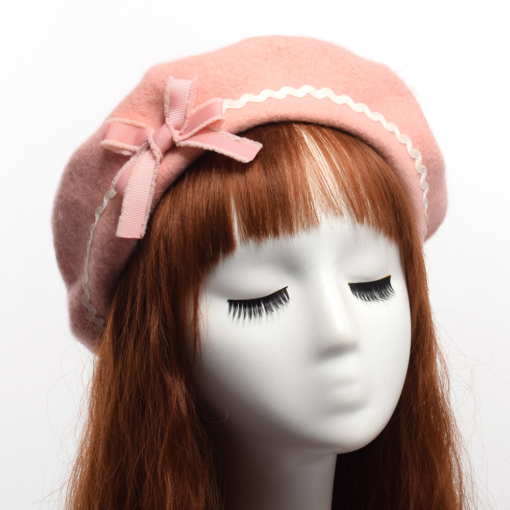 Product information:Style: sweet and cuteHat top style: flat topStyle: beretBrim style: no brimSize: One size fits 56-58 head circumference.Packing list:Hat + clip *1