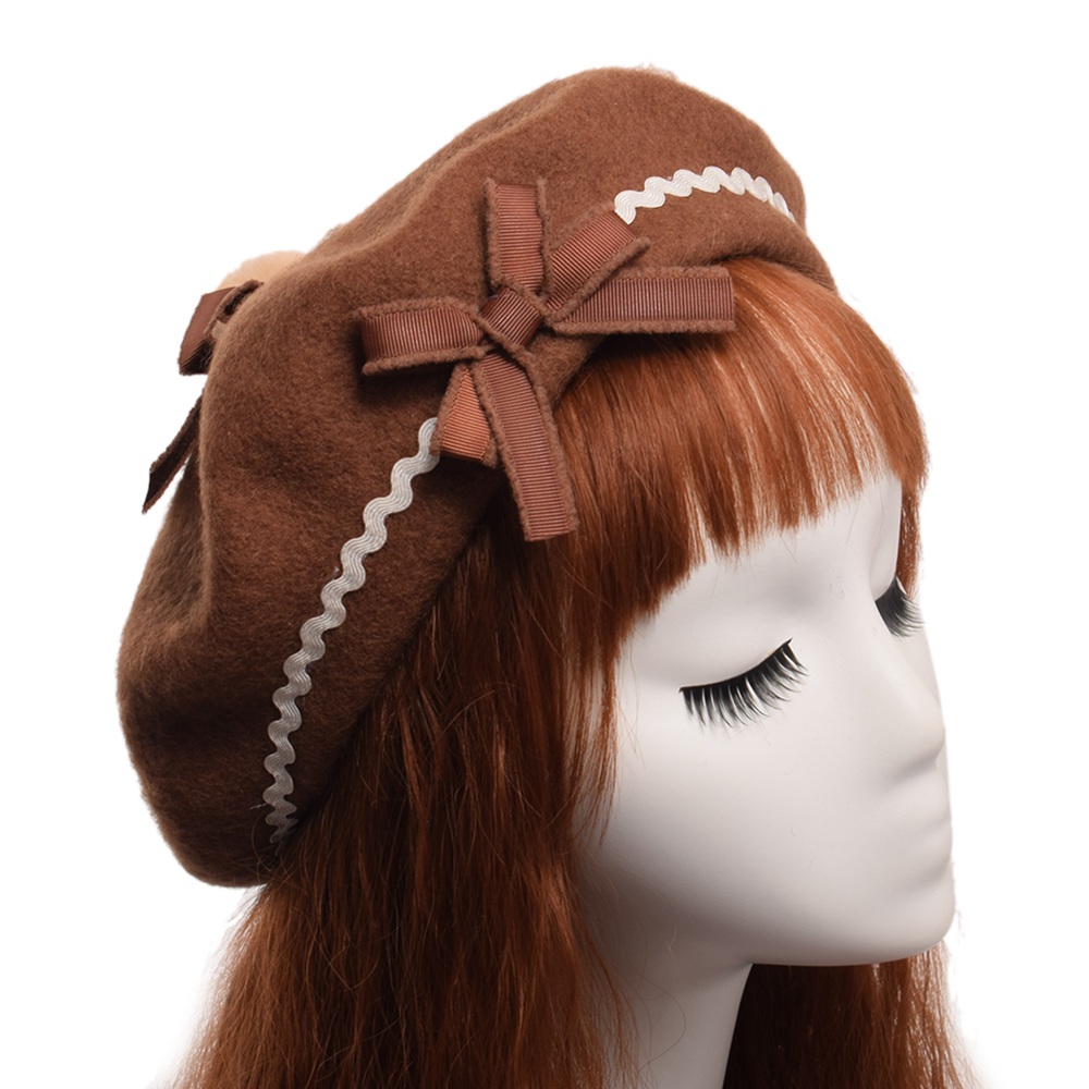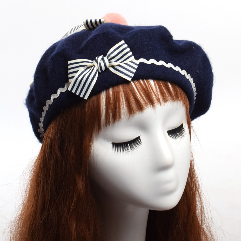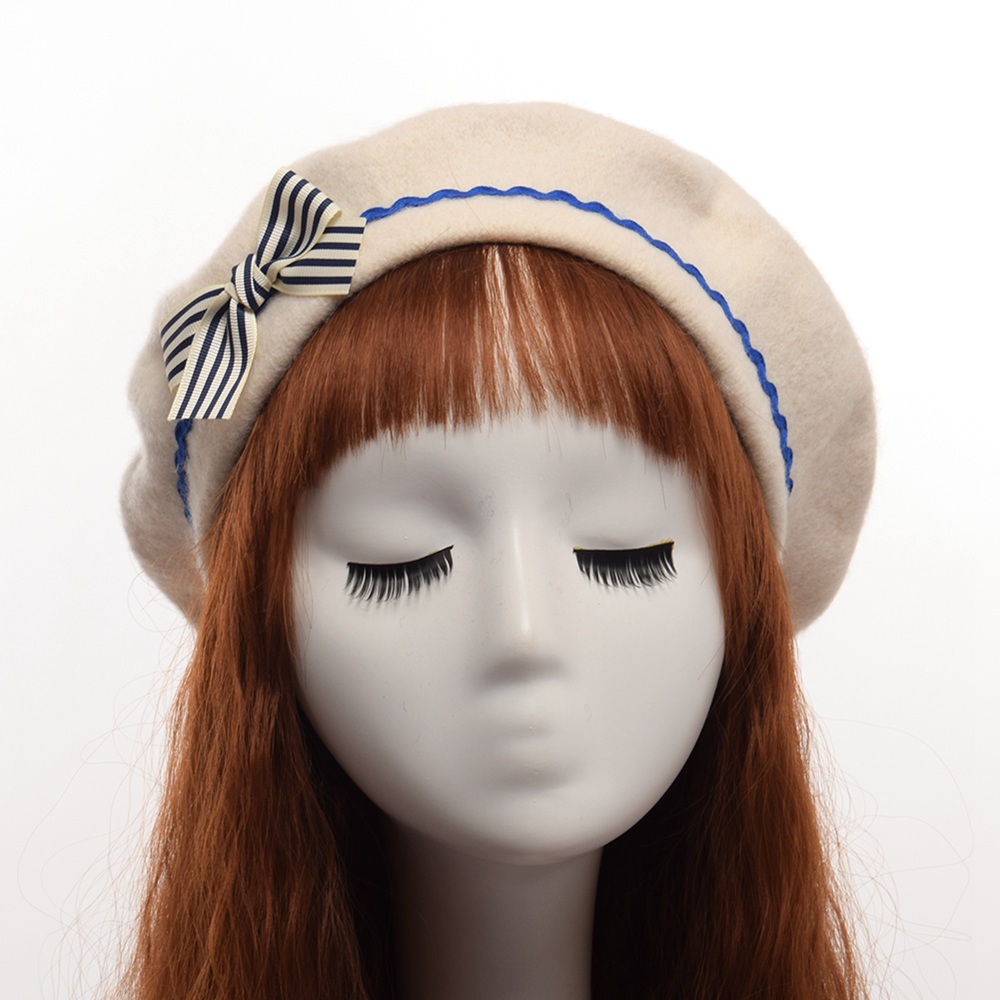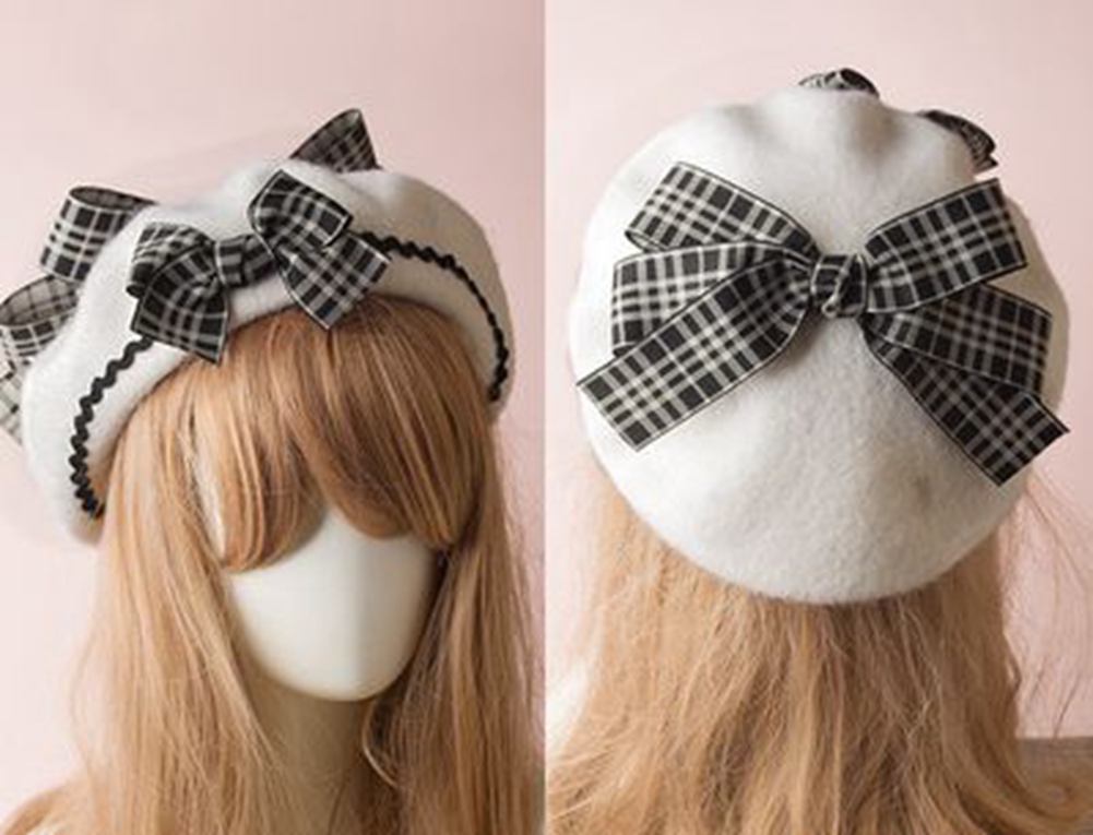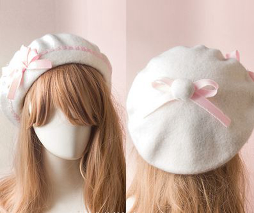 Product information:Style: sweet and cuteHat top style: flat topStyle: beretBrim style: no brimSize: One size fits 56-58 head circumference.Packing list:Hat + clip *1