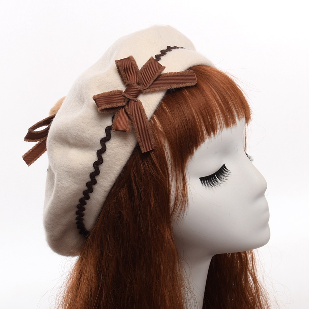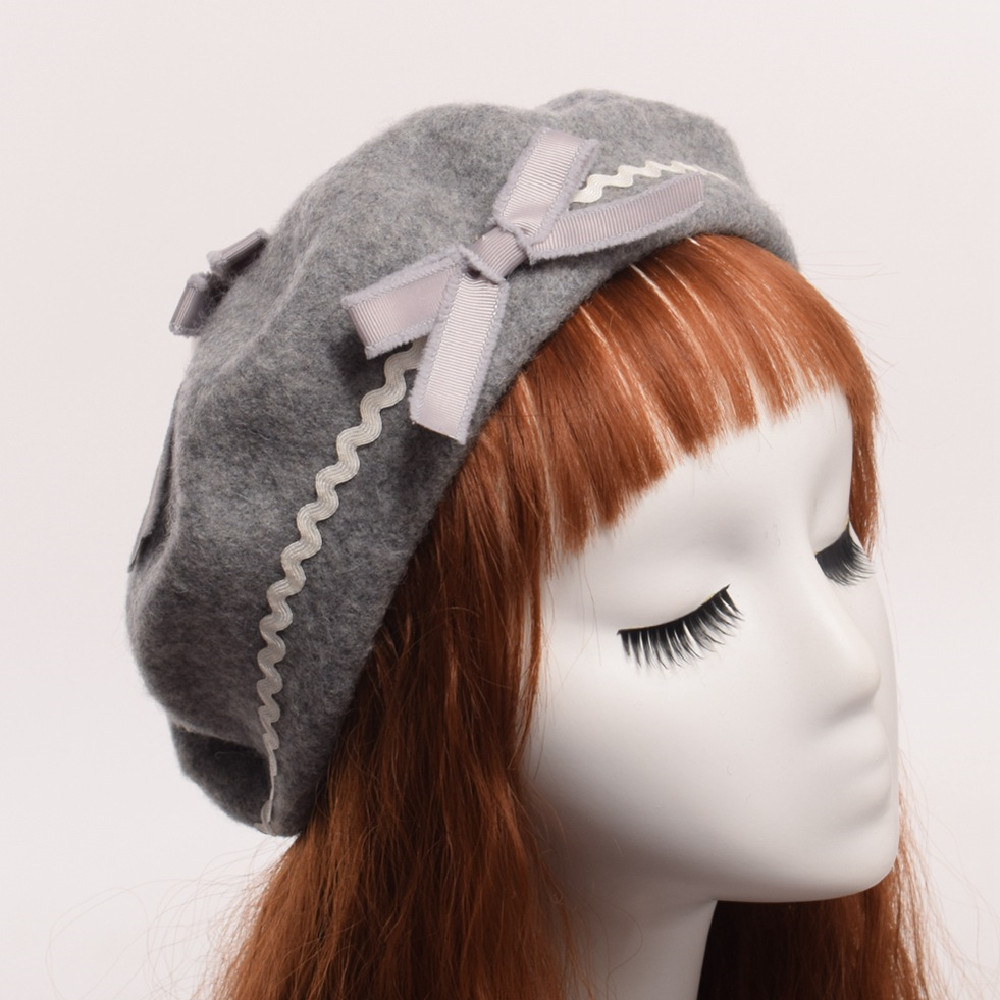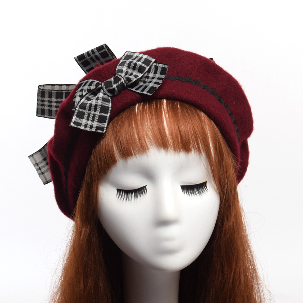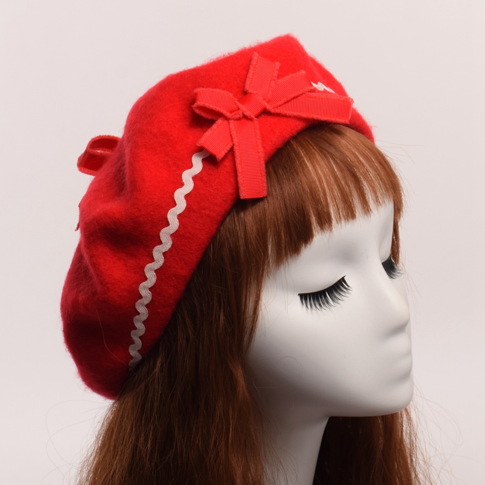 Product information:Style: sweet and cuteHat top style: flat topStyle: beretBrim style: no brimSize: One size fits 56-58 head circumference.Packing list:Hat + clip *1