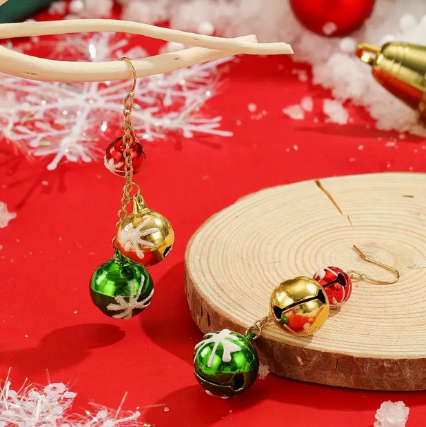 European And American Elegant Cute Christmas Colorful Bell Tassel Earrings