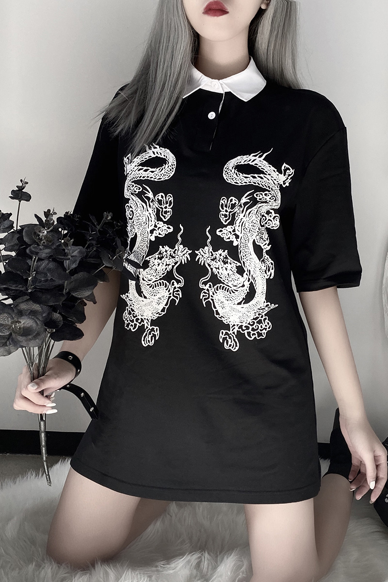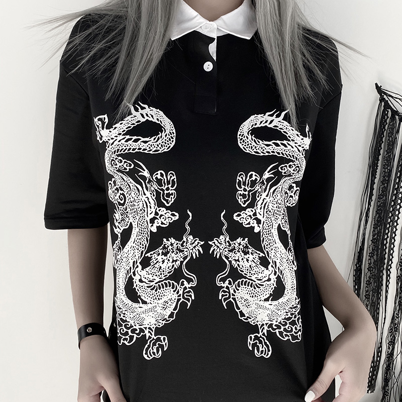 Cotton T-shirt Women's Half Sleeve Long Long Print Top