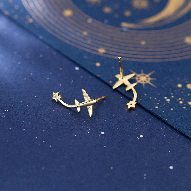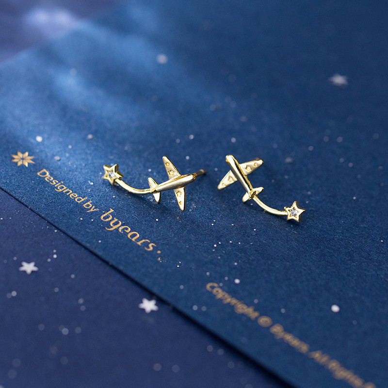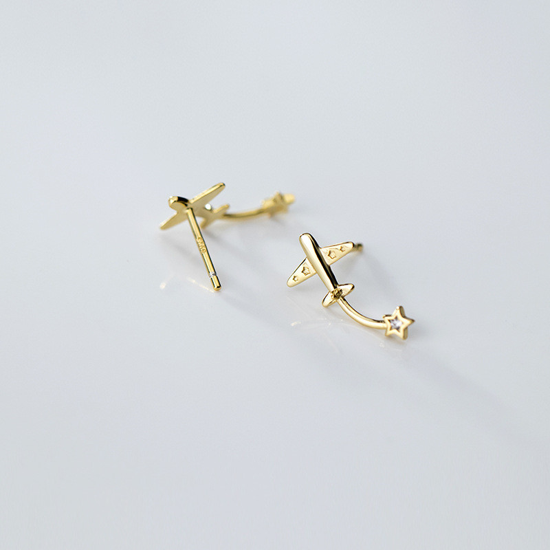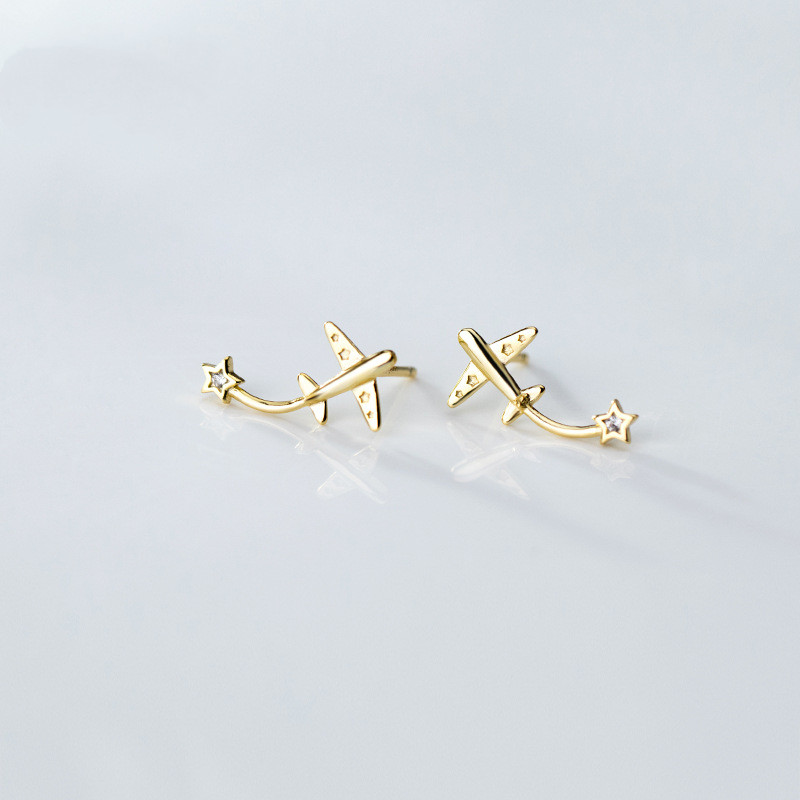 Korean Style Cute Small Fresh Airplane Sweet Diamond Star Earrings
