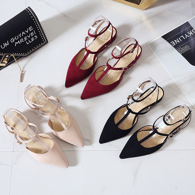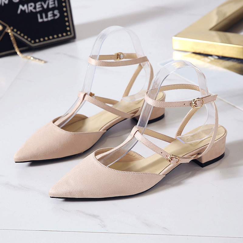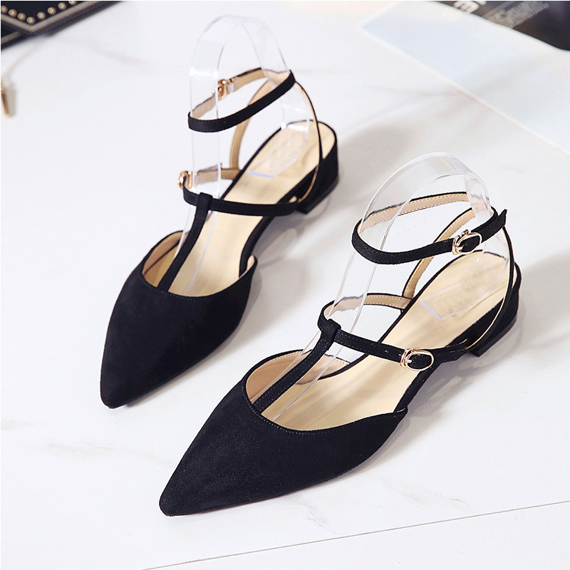 Spring new low-heeled low-heel buckle lace-up shoes flats