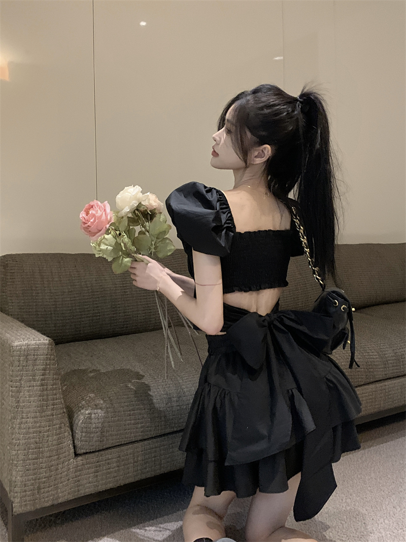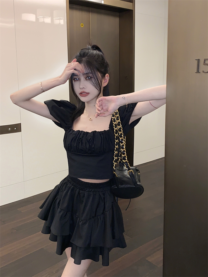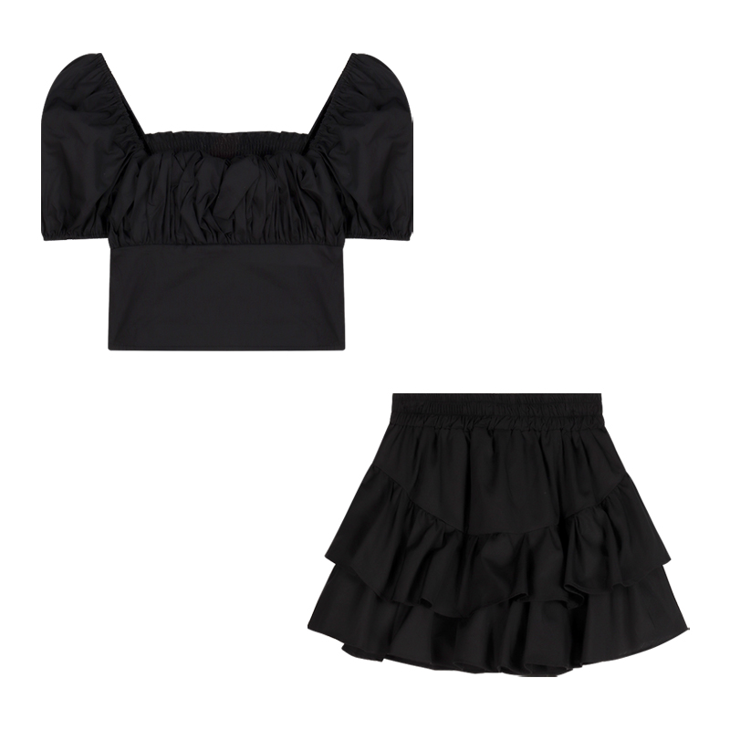 Color classification: Black top, black skirt