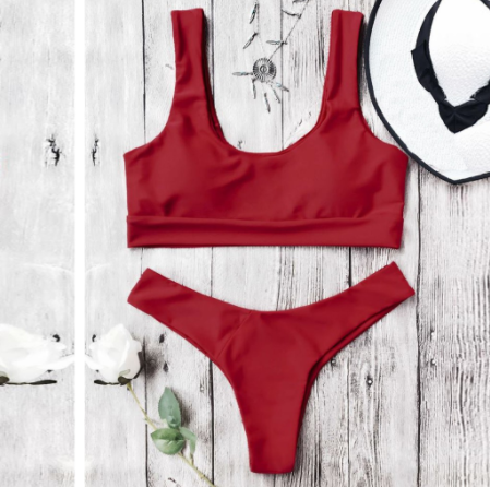 European and American foreign trade new style sexy solid color bikini beach with chest pad polyester female swimsuit