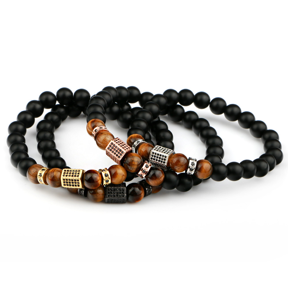 Brass Bead Bracelet Men's Tiger Eye Bead Beaded Bracelet