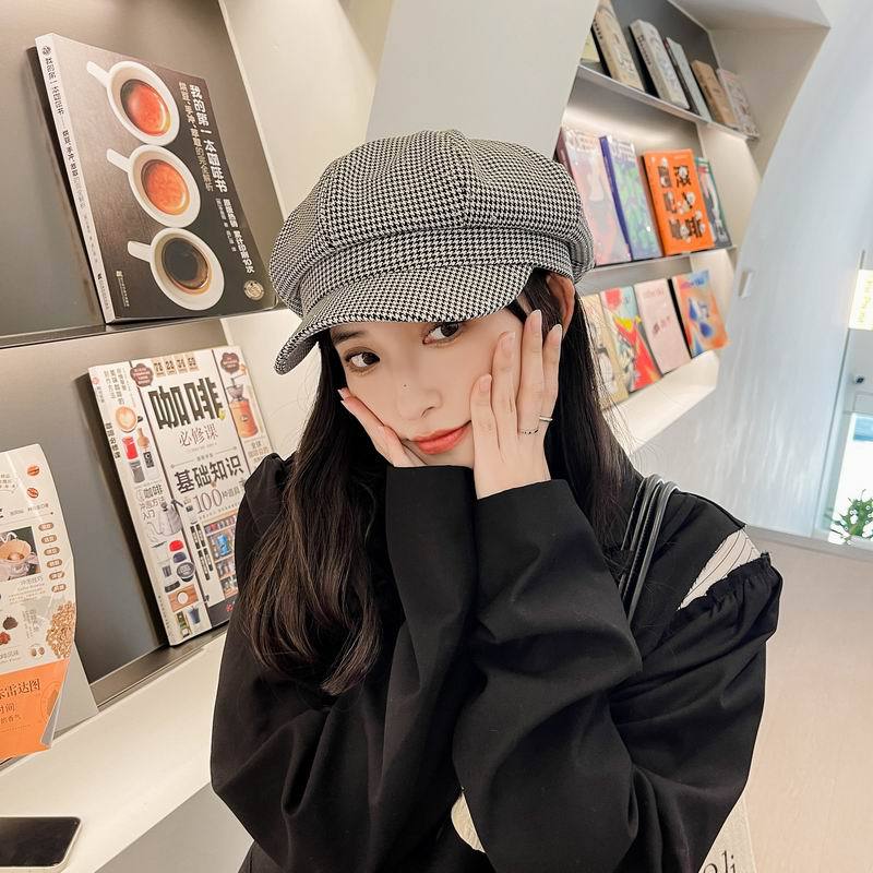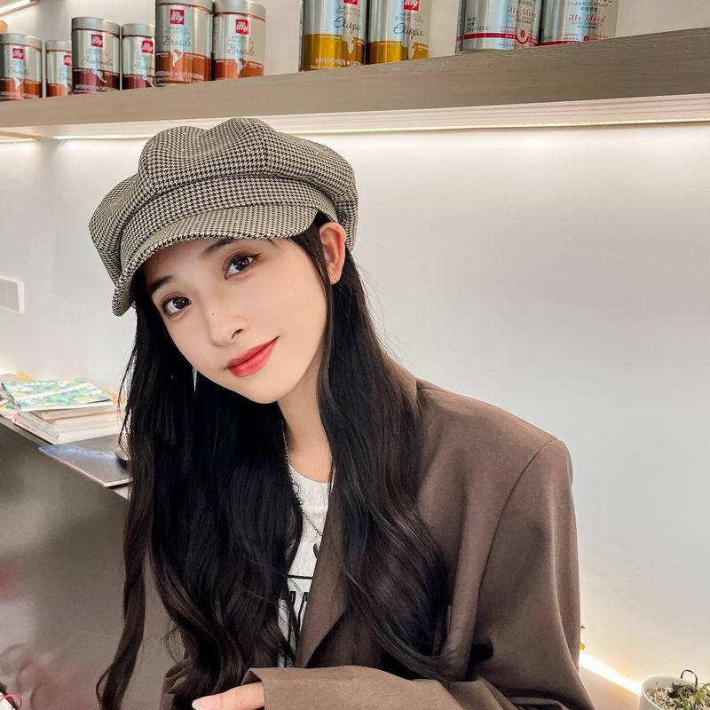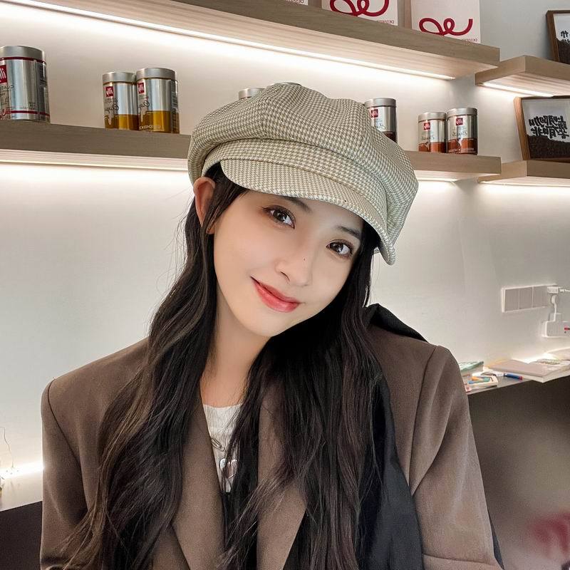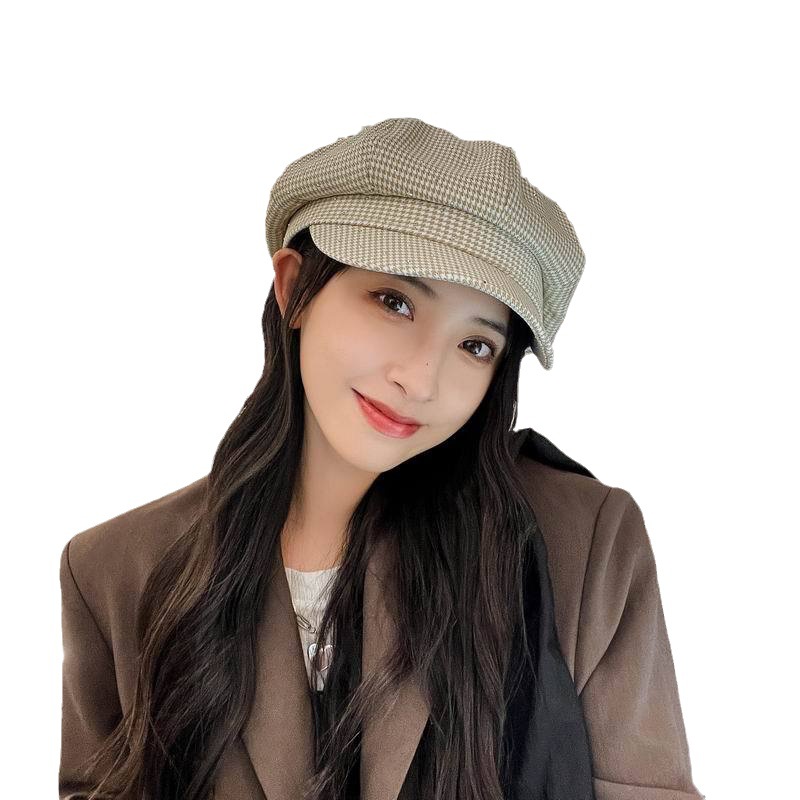 Color: houndstooth cap beige, houndstooth cap Green, houndstooth cap Gray