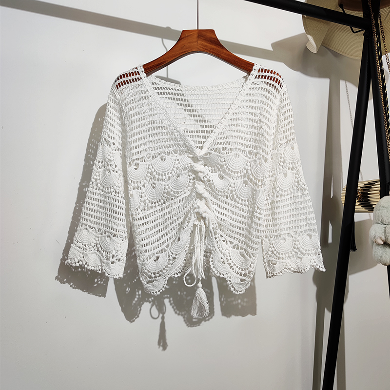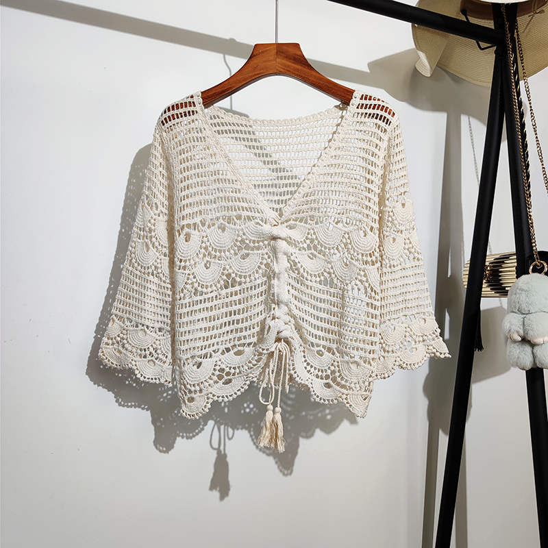 Material: chemical fiber blendedStyle: Fashion and simplicityFeatures: hollowColour: white, apricot