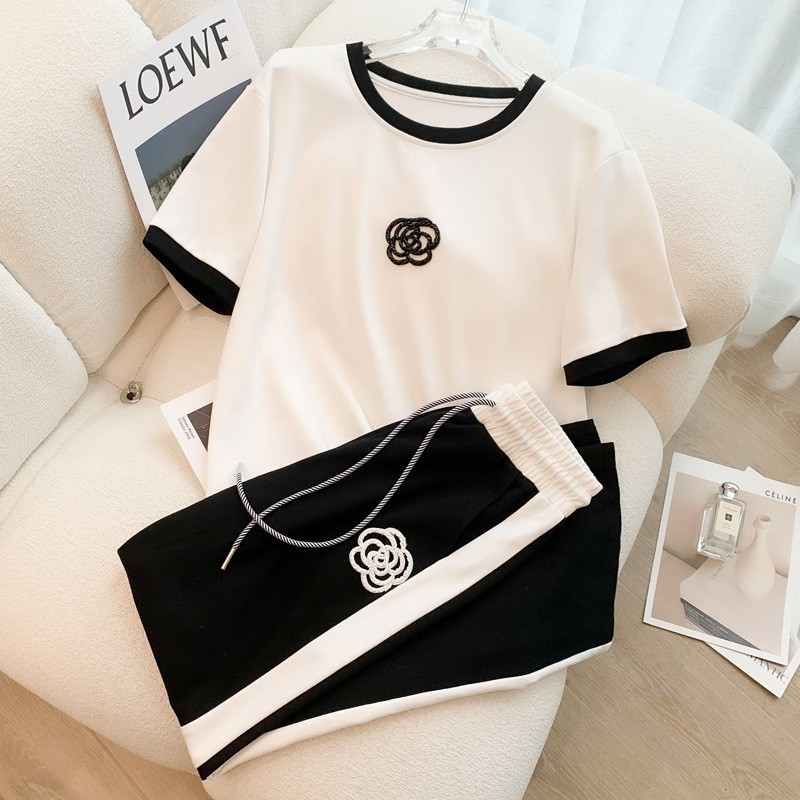 Color: white top + black pants, black top + black pants