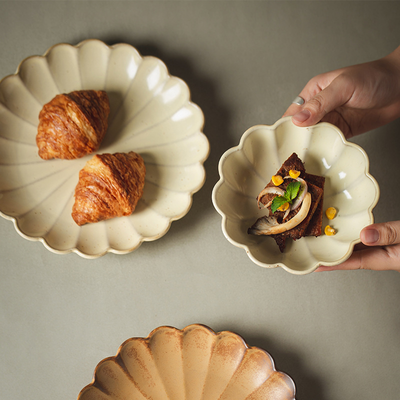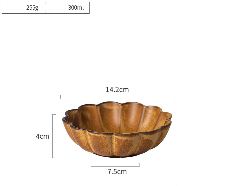 Specifications: 5.5 inch brown chrysanthemum pill bowl, 5.5 inch beige chrysanthemum pill bowl, 8 inch brown chrysanthemum pill plate, 8 inch beige chrysanthemum pill plate