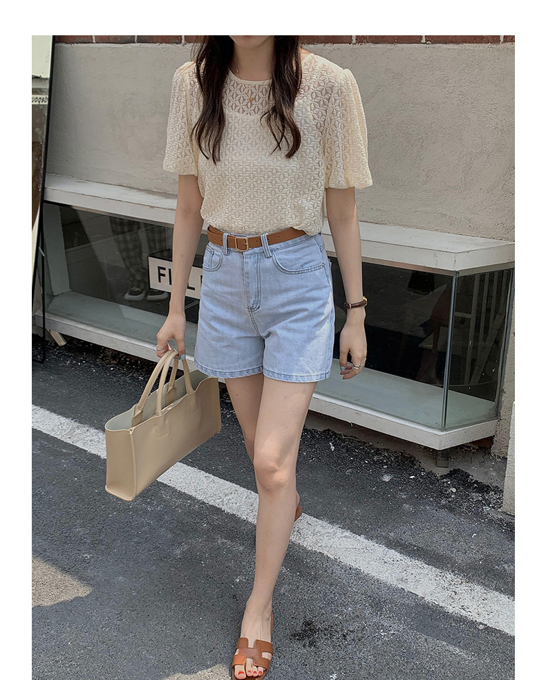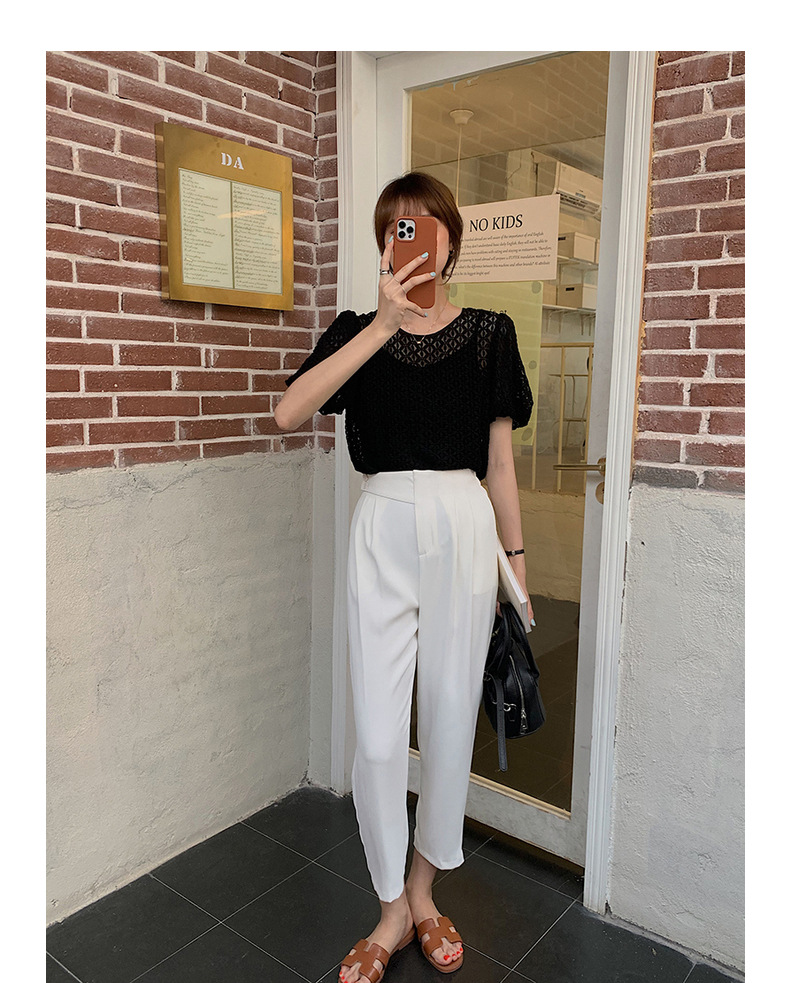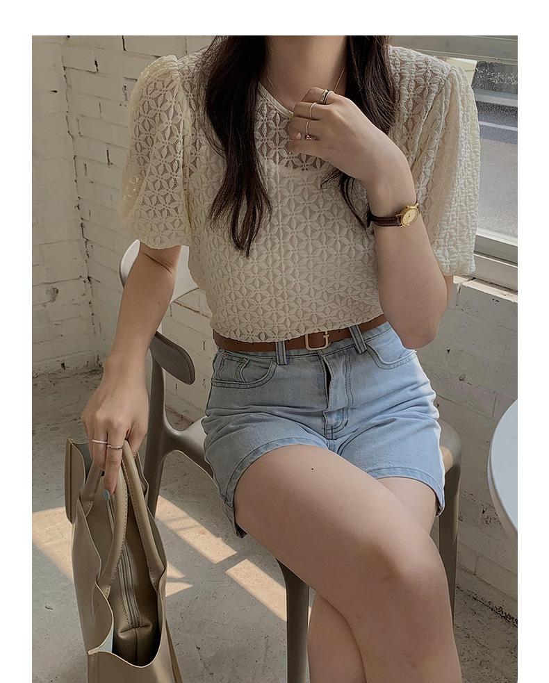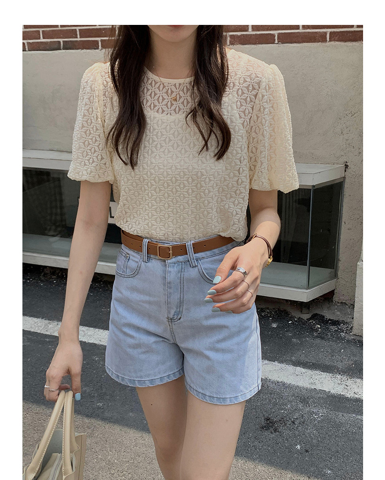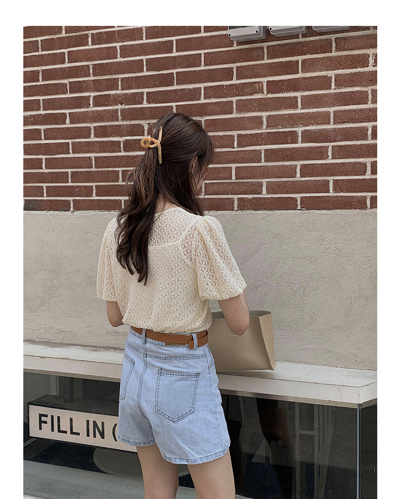 Product Name: Ladies Puff Sleeve Hollow Top Short Sleeve (Bonus Sling Top)