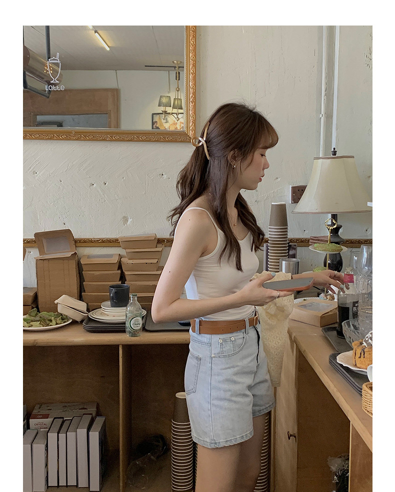 Short-sleeved hollow top (comes with the same color sling top) X1