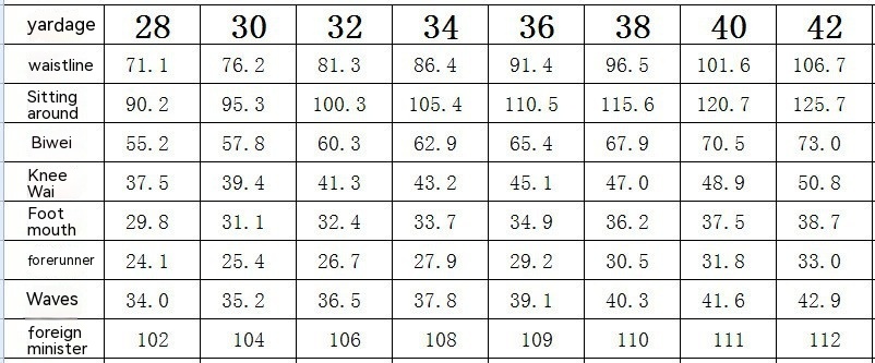 Size: 28, 30, 32, 34, 36, 38, 40, 42