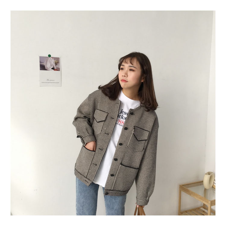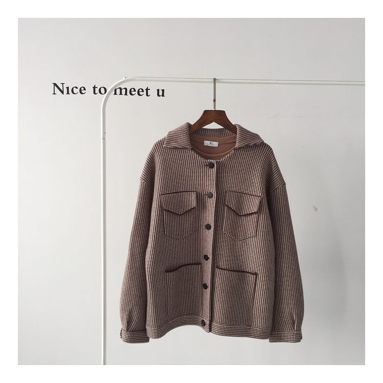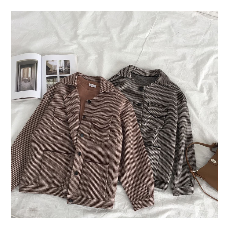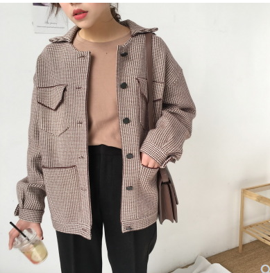 lazy chic Plaid loose sweater cardigan BF wind knitted jacket thickened