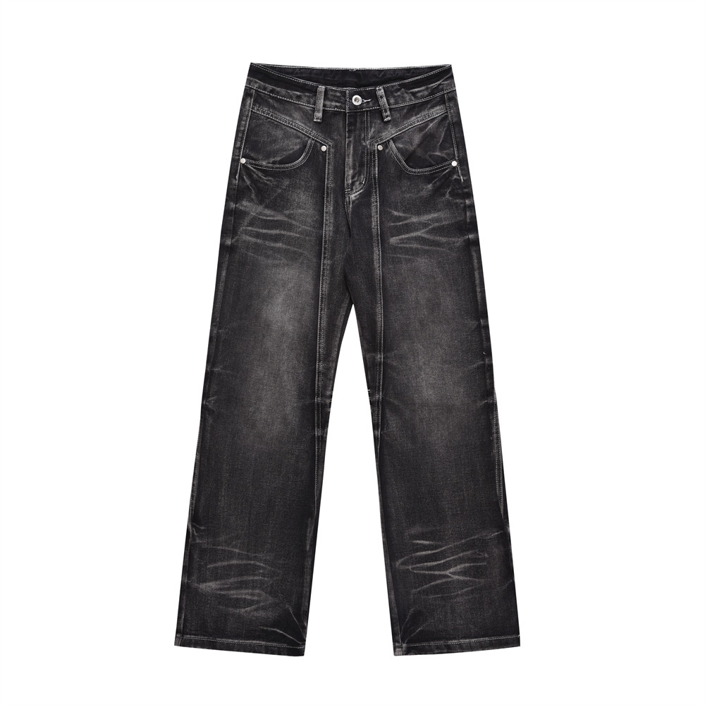Washed Old Wide Leg Denim Trousers For Men