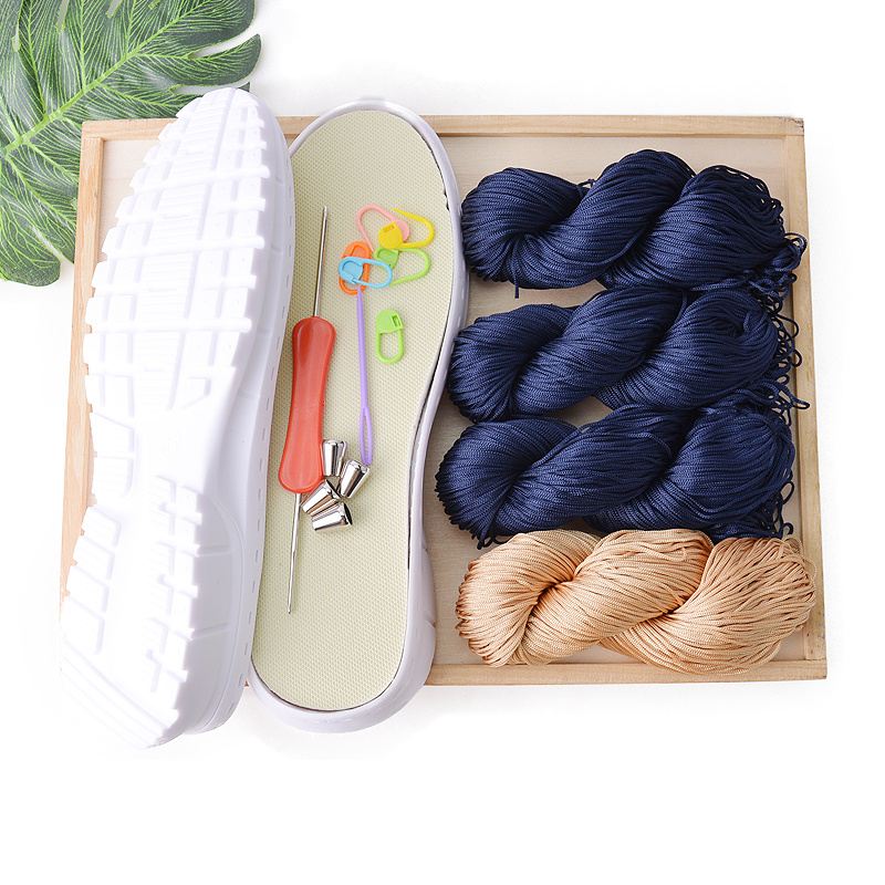 K: White sole+3 navy blue+1 camel thread