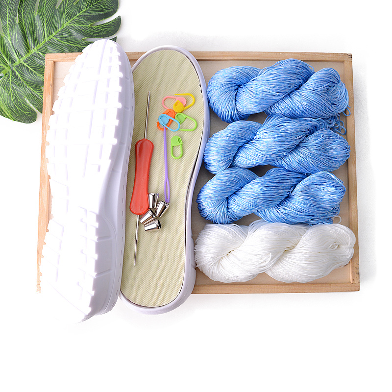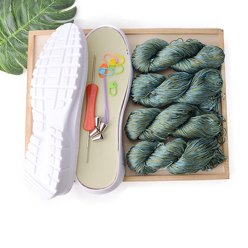 M: White sole+4 blue green floral threads