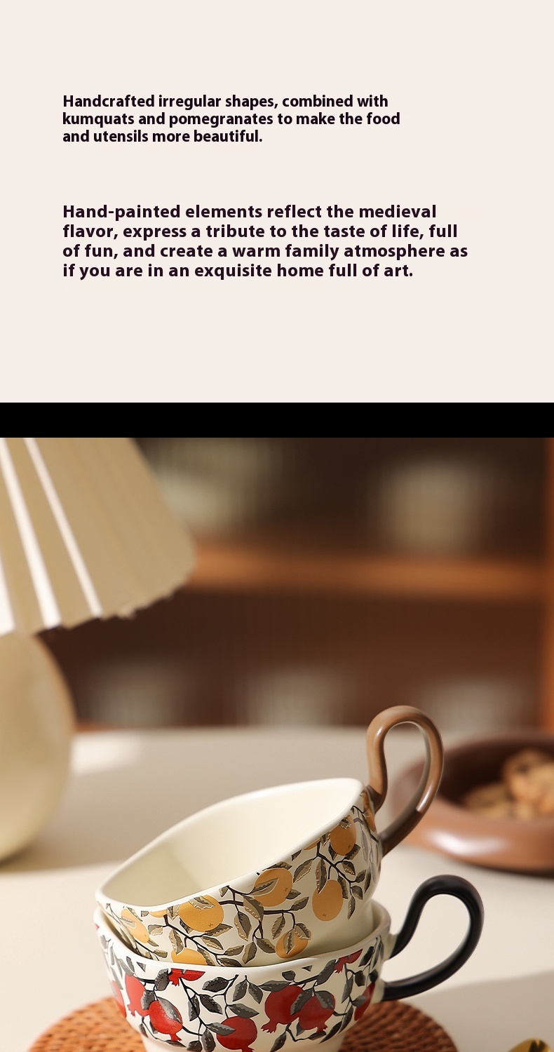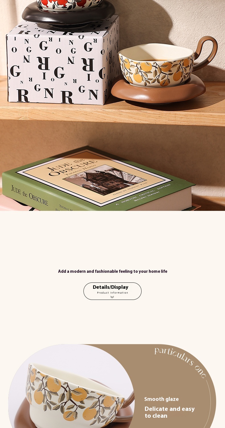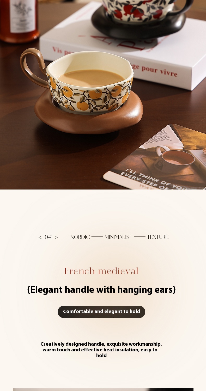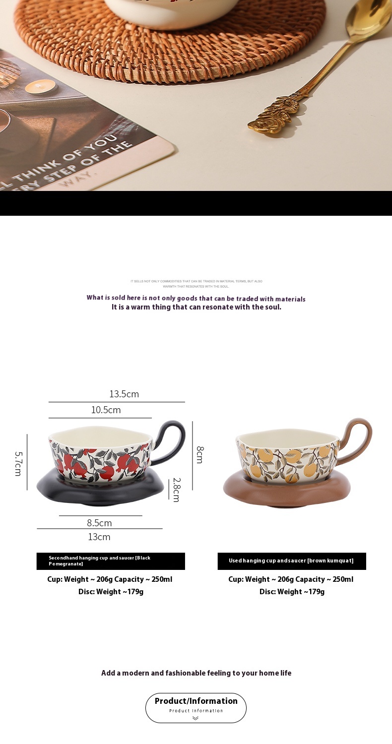 Product information:Color: Medieval pomegranate cup and saucer-black, medieval Citrofortunella microcarpa Wijnands cup and saucer-Orange Style type: mild luxury retro Packing specification: Suit Style: retro style Capacity: 210ML