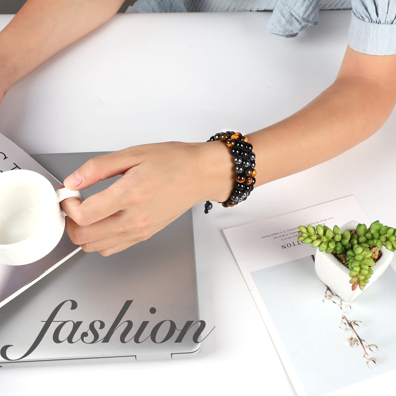 Product information :Material: natural stoneProcessing technology: manualColor: three layers of yellow tiger eyes, blue tiger eyes, yellow tiger eyesPacking list:Bracelet *1
