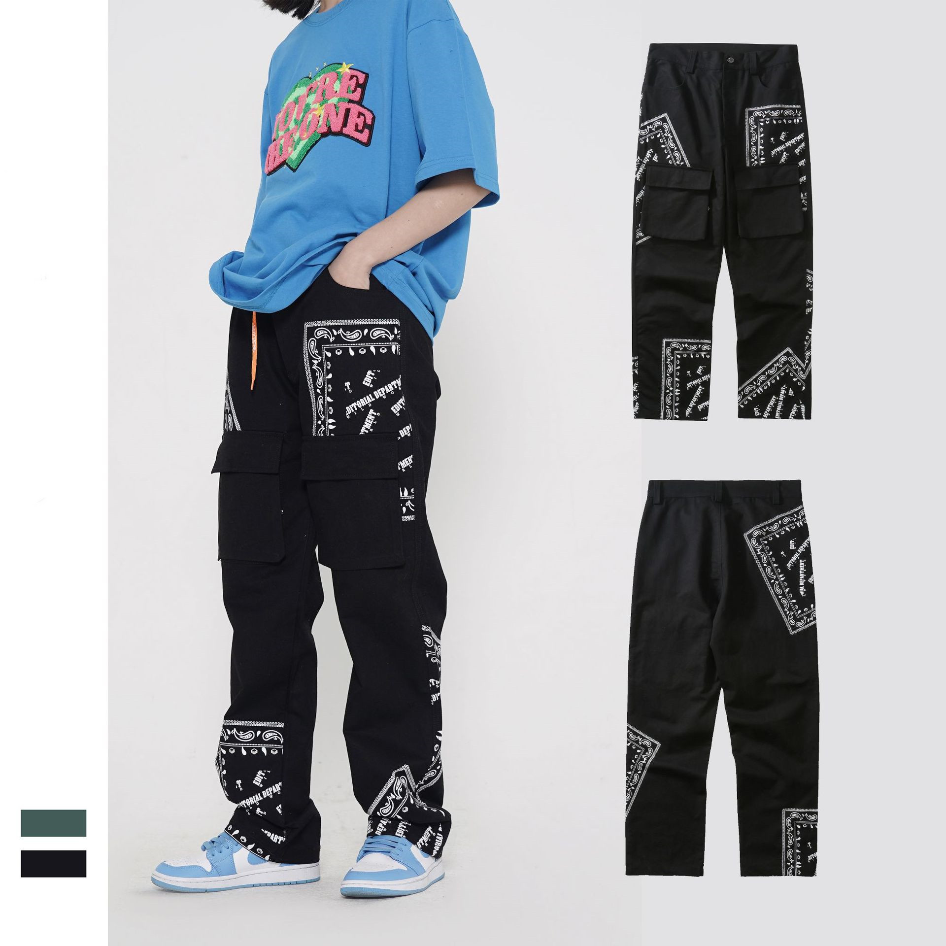 Features:Mid waist, loose