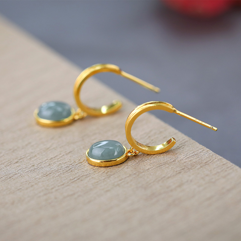 Product information:Color: Emerald egg surface earrings Applicable population: Female Material: Jade Purity: 925 silver Shape: Geometry Popular elements: Circle Style: New Chinese style