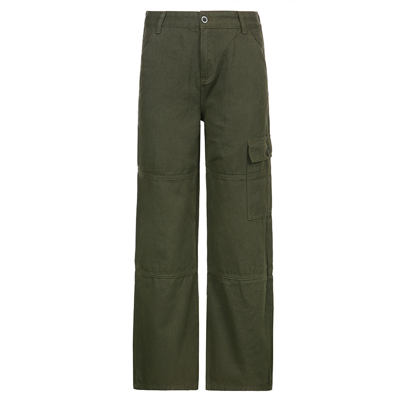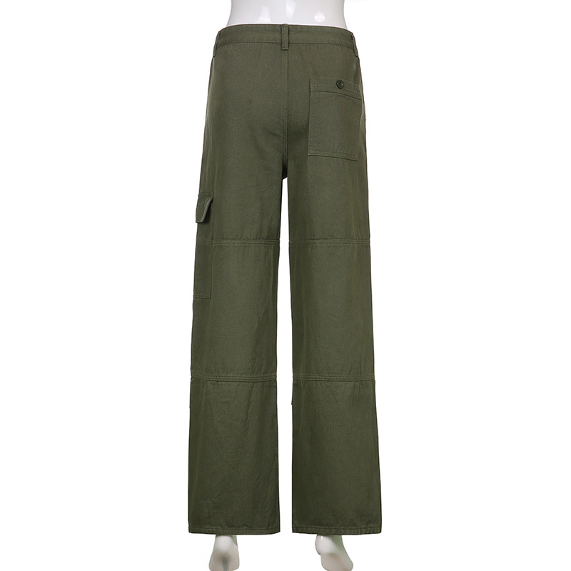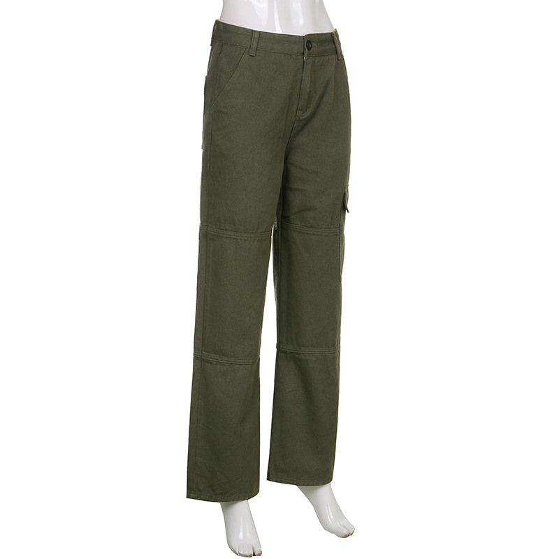 Casual Straight Solid Color Pocket Panel Cargo Trousers