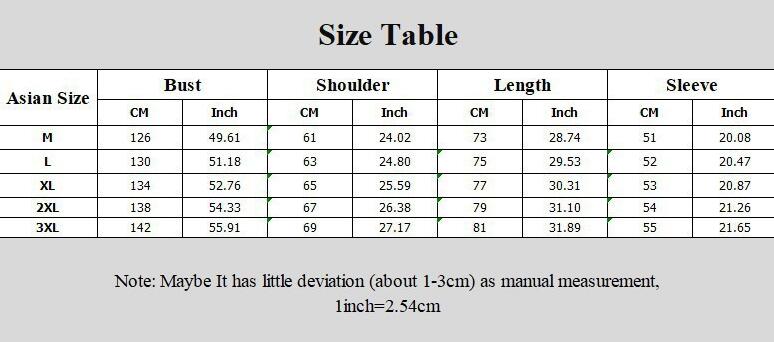 1. Asian sizes are 1 to 2 sizes smaller than European and American people. Choose the larger size if your size between two sizes. Please allow 2-3cm differences due to manual measurement. 2. Please check the size chart carefully before you buy the item, if you don't know how to choose size, please contact our customer service. 3.As you know, the different computers display colors differently, the color of the actual item may vary slightly from the following images.