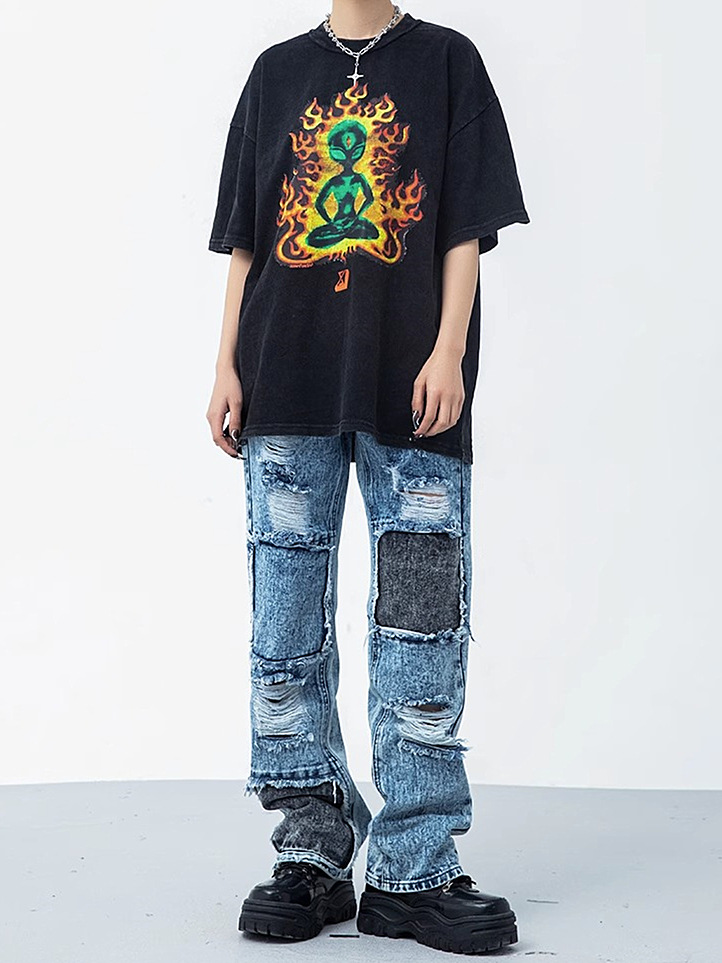 Product information:Color: blueSize: S,M,L,XL,2XL,3XLFly opening: zip placketFabric name: CottonInventory Type: whole transactionPants type: Straight typeStyle: street fashionProcess: non-ironing treatmentLeg opening style: Straight