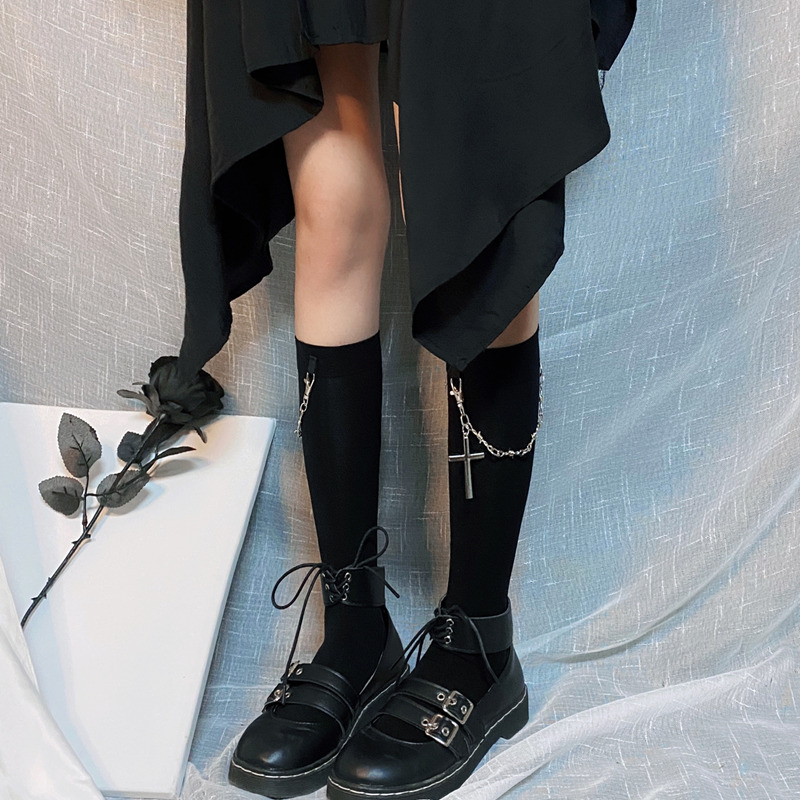 Product information:Style: sweetApplicable gender: femaleColor: blackCylinder height: medium cylinderThickness: normalSize information:Size: 35-38Packing list:Socks X1Pair