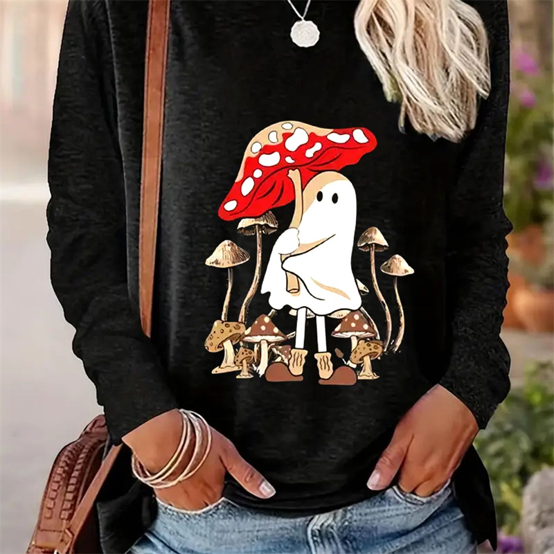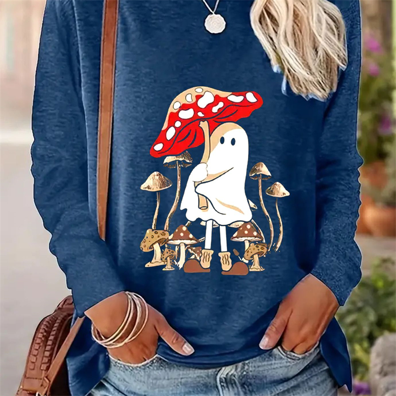 Spring And Autumn Women Casual Simple Pattern Printed Round Neck Long Sleeve T-shirt