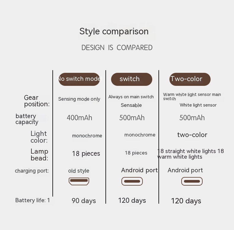 Product information:Power supply mode: Built-in battery Light color: white light, warm light, two-tone Voltage: ≤ 36V Size: 78 * 17mm Shape: Square Style: modern simplicity