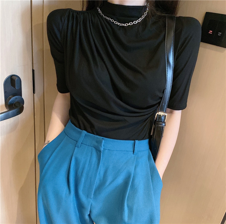 Fabric Name: PolyesterMain fabric component: PolyesterMain fabric content: 51% - 70%Style: PulloverSleeve length: 5 / middle sleeveVersion: SlimLength: ordinary (50cm < length ≤ 65cm)Collar type: vertical collarPopular element: irregular