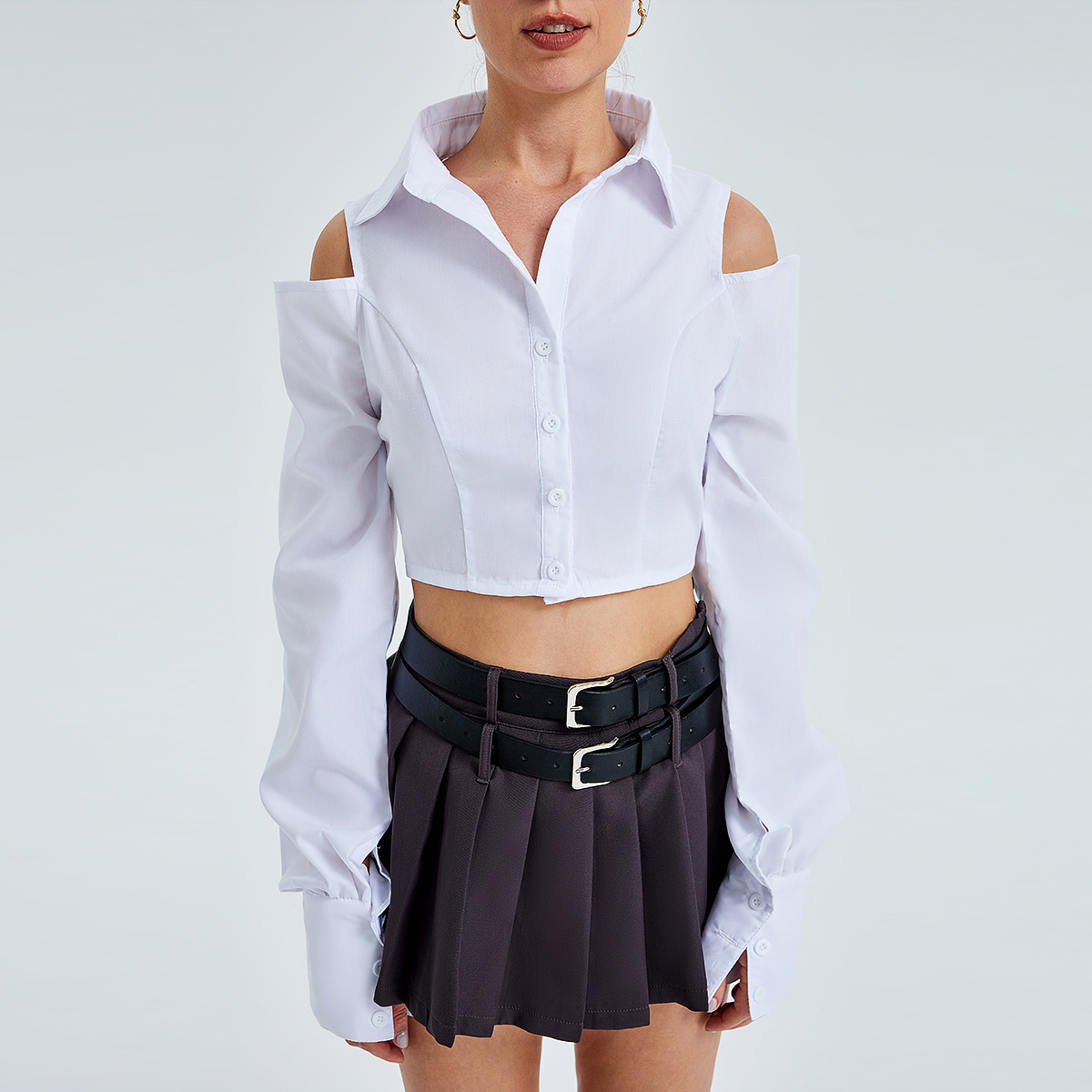 Women's New Solid Color Slim -fitting Fashion Off -shoulder Loose Long -sleeved Shirt