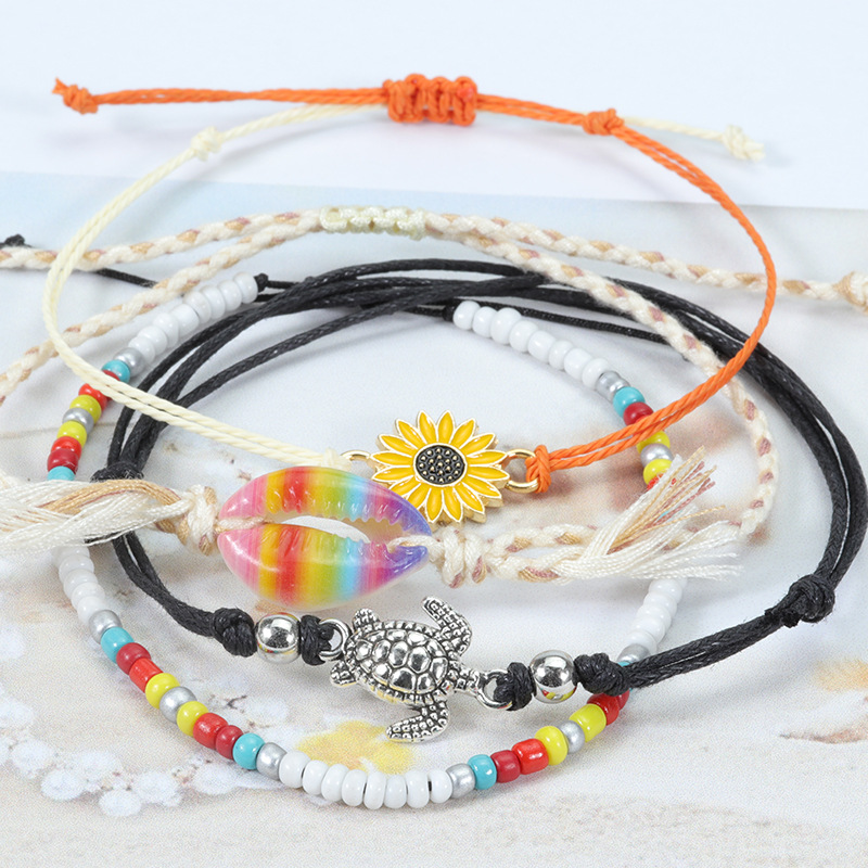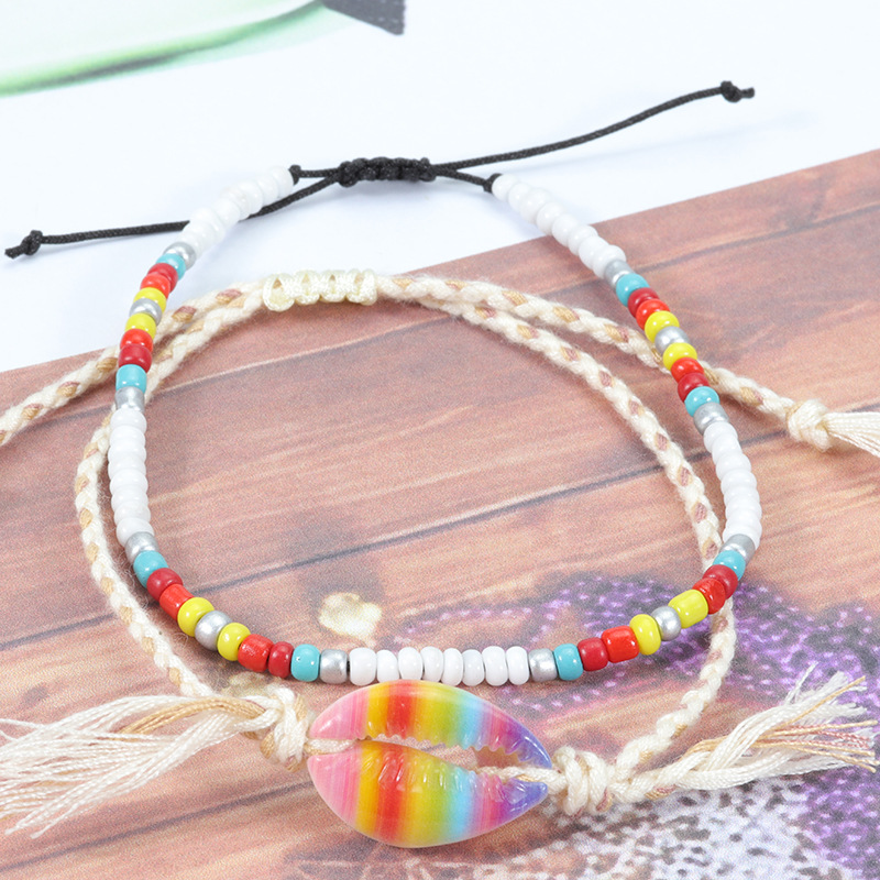 Name: Rainbow Shell Foot Chain 4-piece SetMaterial: Shell, rice bead, wax threadWeight: 9gSize: 18-36cm