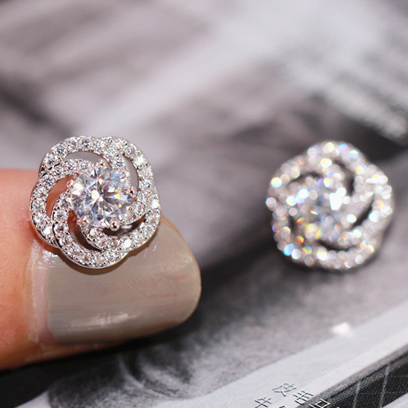 Color: (A) rose zircon hollow, (B) flower zircon, (C) love peach heart hollow, (D) cat claw zircon, (E) bow zircon, (F) love peach heart full diamond zircon Stone ear hook