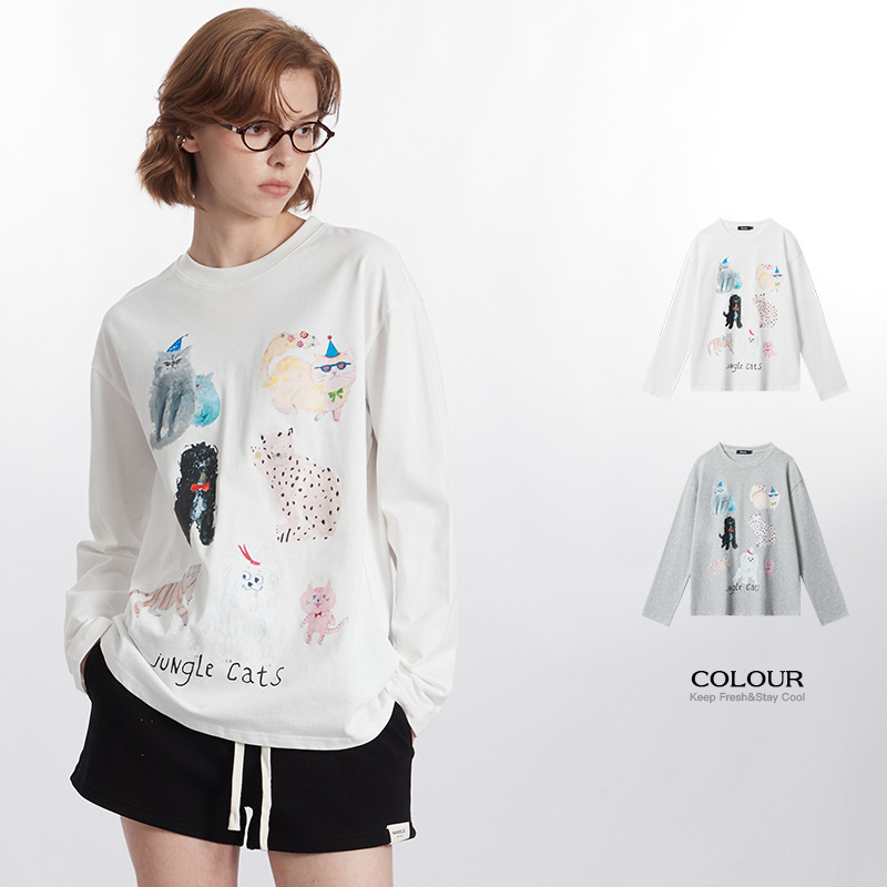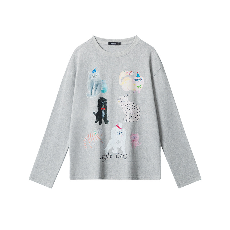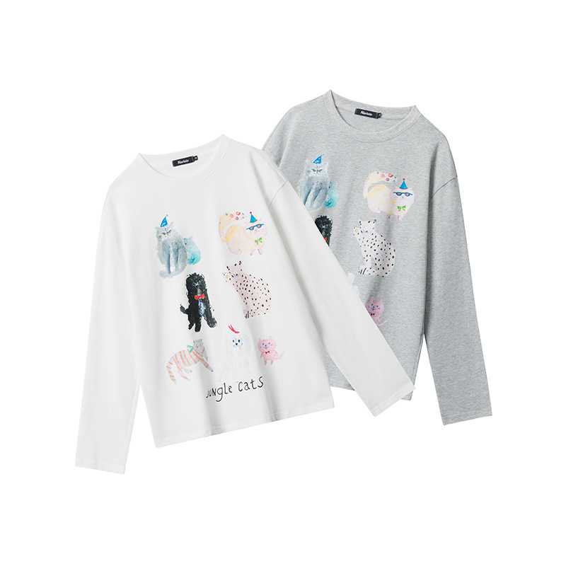 Product information: Fabric name: 100% cotton Color: white, melange gray Sleeve type: regular sleeve Main fabric composition: Cotton Size: S,M,L Style type: Japanese and Korean casual Sleeve length: long sleeve Style: pullover Style: Korean style