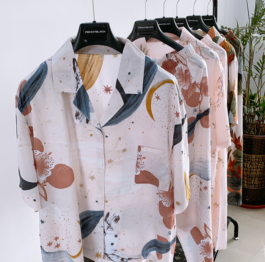 Color: Ordinary rayon palm leaf short-sleeved trousers, ordinary rayon starry short-sleeved trousers, ordinary rayon ink, 100 sets from 39 specials