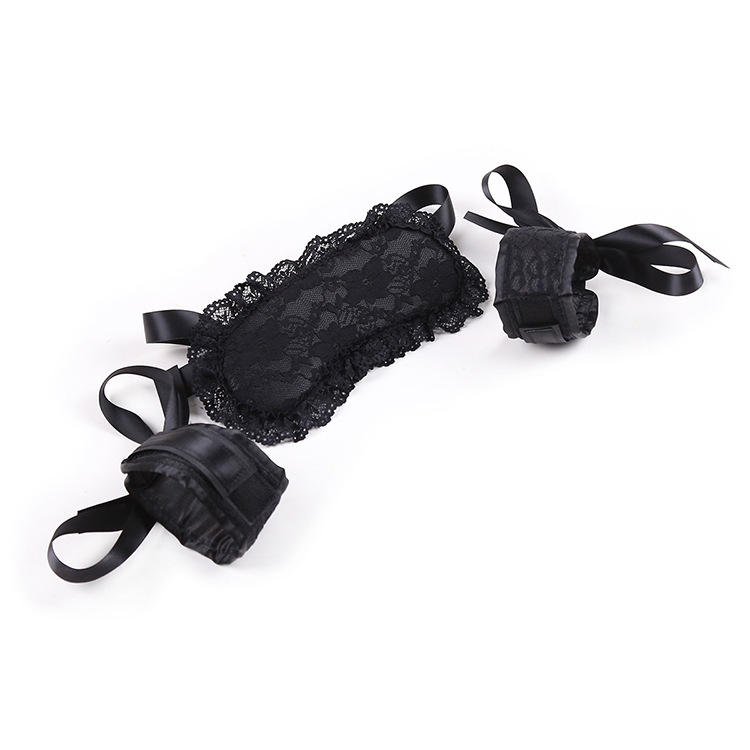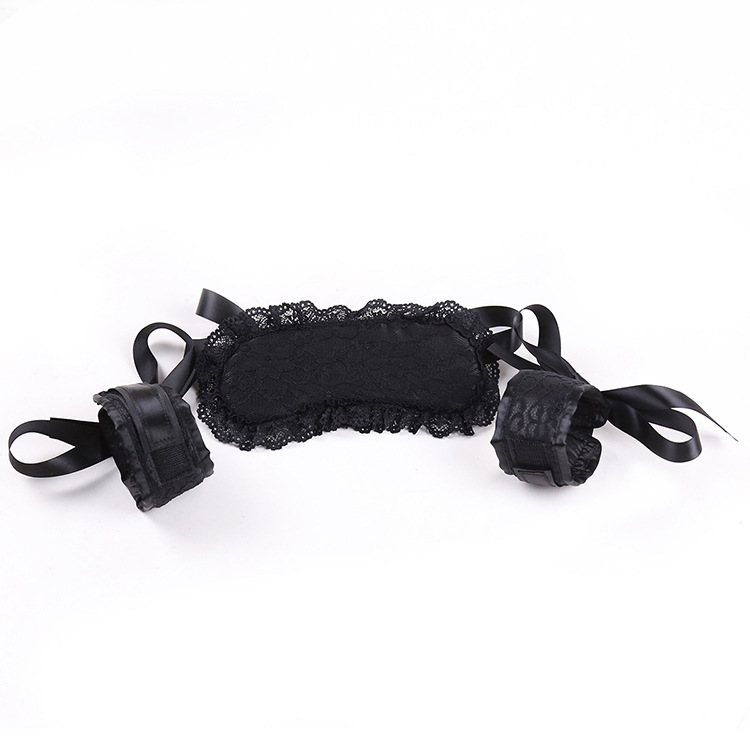 Specification:Material: LeatherFunction and use: Adult productsProduct name: Appealing handcuffs eye mask setProduct body material: PuMaximum noise: NoneSpecifications: Black lace velcro (two-piece set)