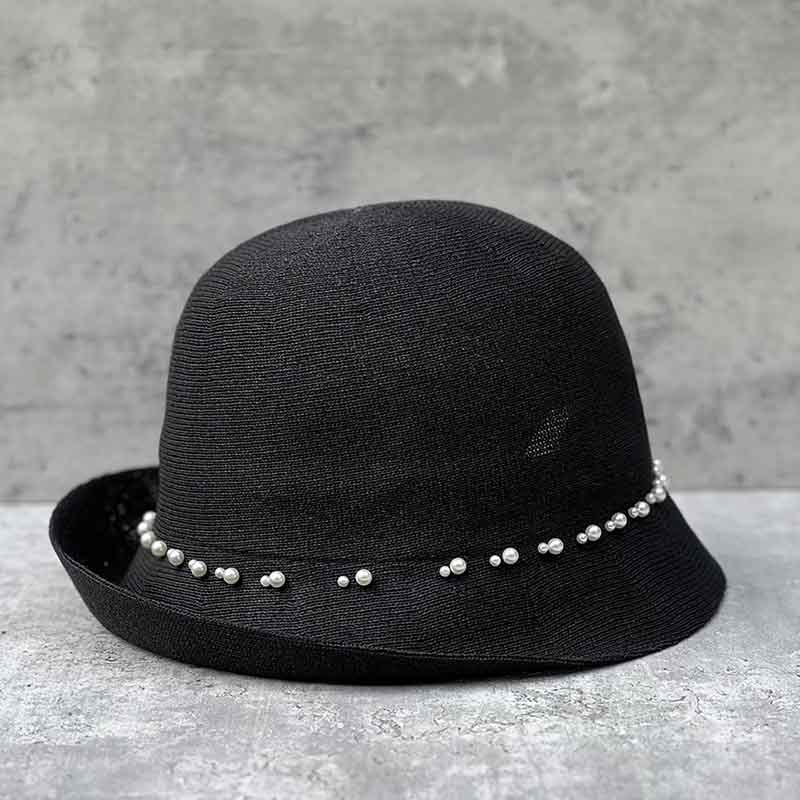 Color: Black Pearl chain Japanese paper bucket hat, beige pearl chain Japanese paper bucket hat, khaki pearl chain Japanese paper bucket hat