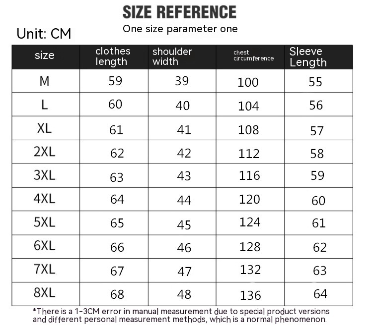 Size: M,L,XL,XXL,3XL,4XL,5XL,6XL,7XL,8XL