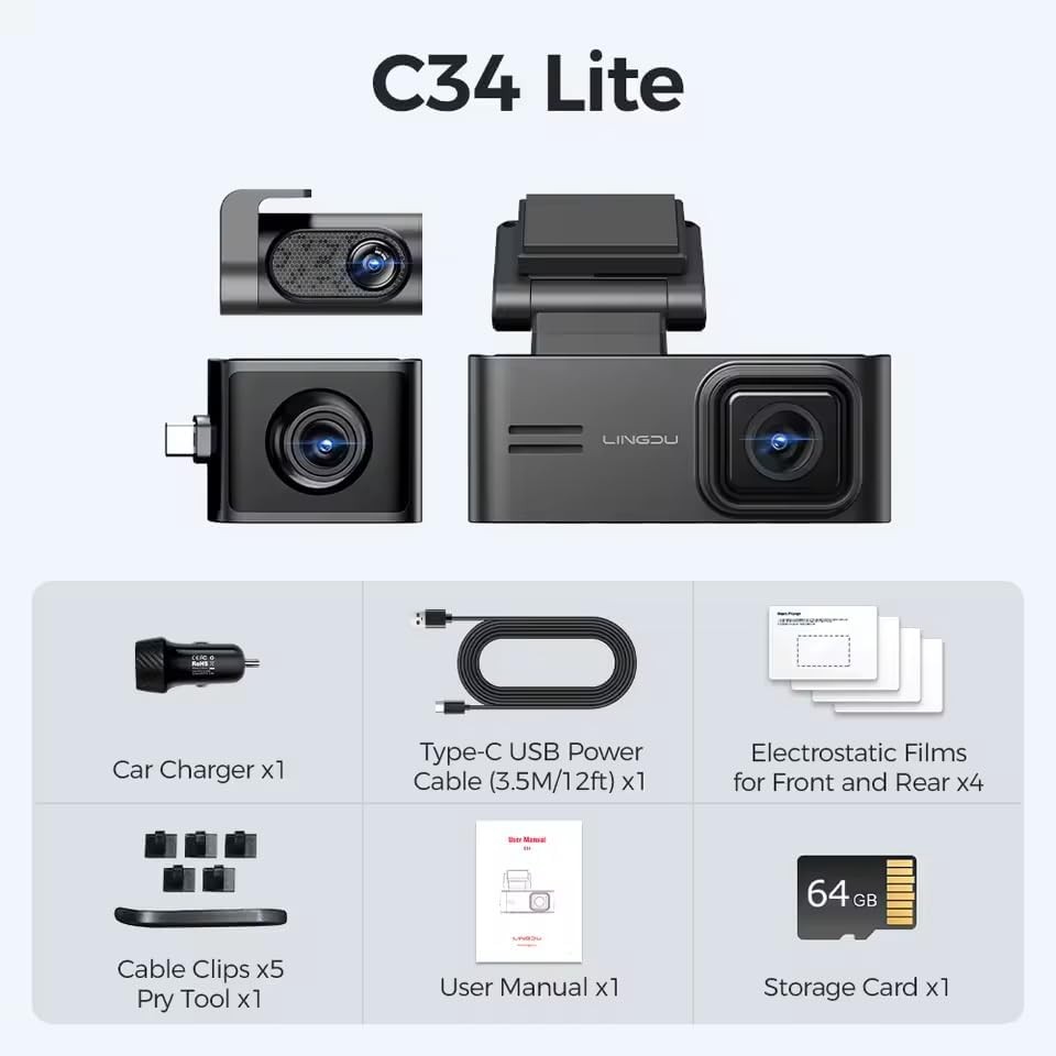 تُعد كاميرا داش كام LINGDU C34 نظاماً متطوراً للتسجيل بثلاث قنوات، صُممت لتوفير تغطية شاملة للمركبة من خلال مراقبة الطريق الأمامي، المقصورة الداخلية، والخلفية في وقت واحد.