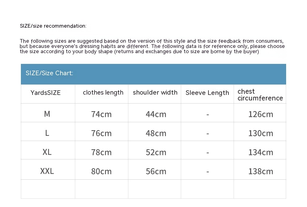 1. Asian sizes are 1 to 2 sizes smaller than European and American people. Choose the larger size if your size between two sizes. Please allow 2-3cm differences due to manual measurement. 2. Please check the size chart carefully before you buy the item, if you don't know how to choose size, please contact our customer service. 3.As you know, the different computers display colors differently, the color of the actual item may vary slightly from the following images.