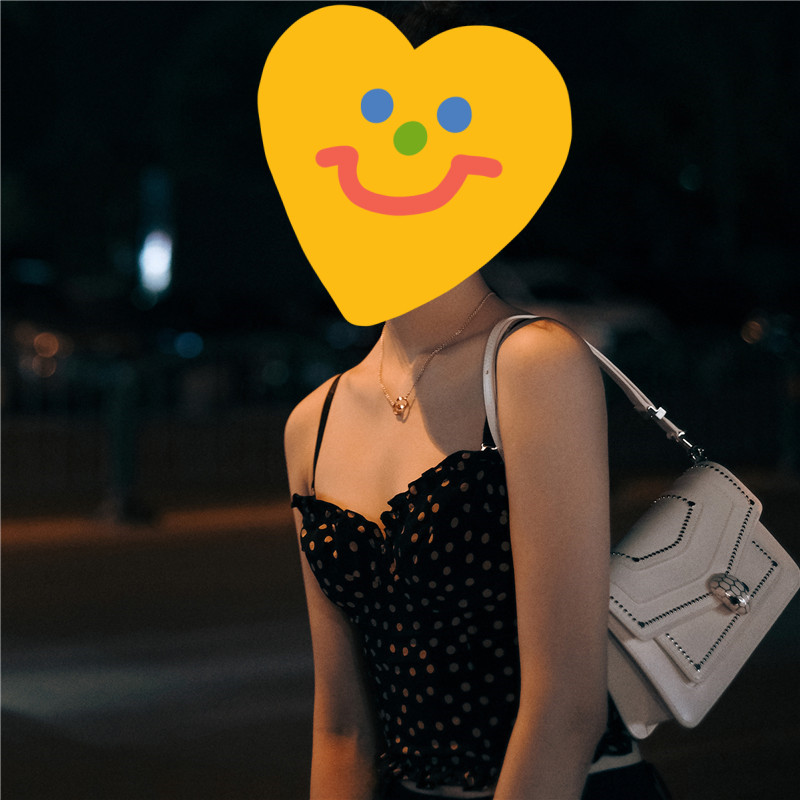 Light Ripe Black Polka Dot V-Neck Slim Casual Sling
