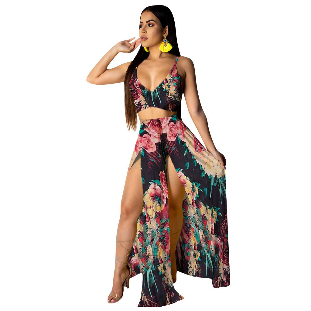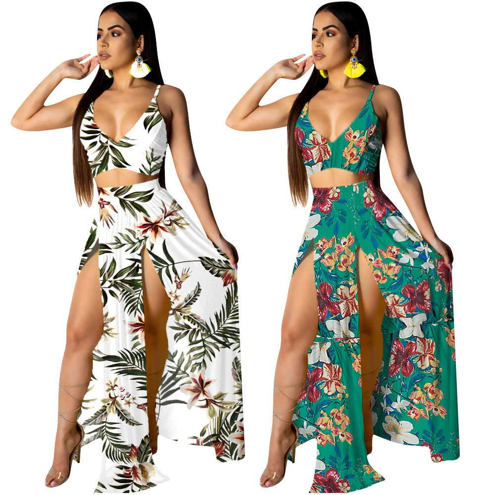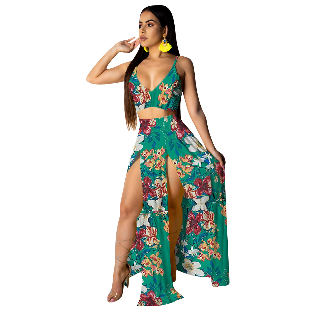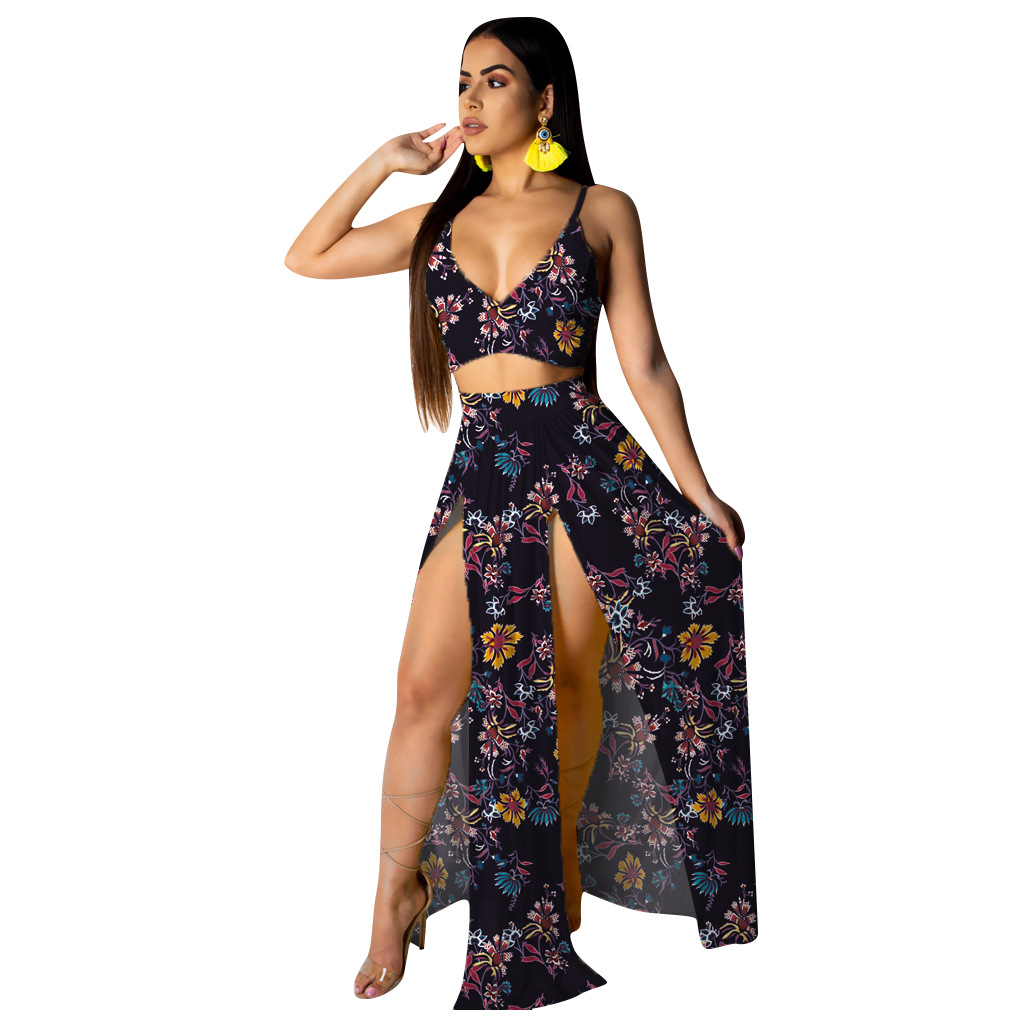 Two-piece dress with printed suspenders